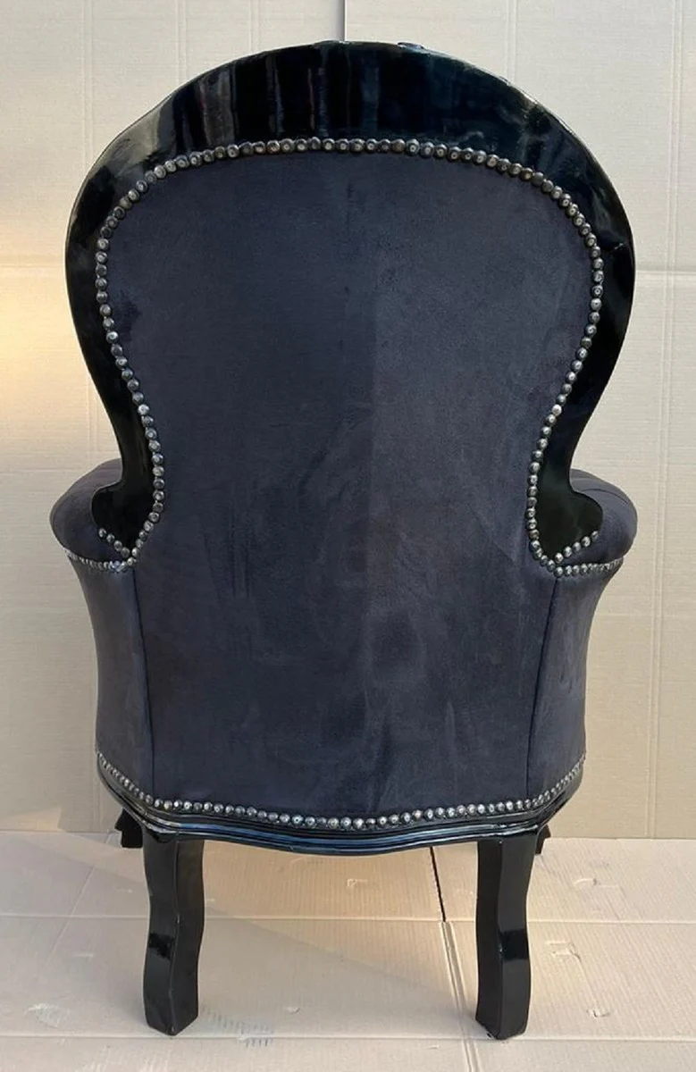 Casa Padrino sill¨®n barroco de terciopelo negro - Magn¨ªfico sill¨®n de sal¨®n de madera maciza - Sill¨®n de sal¨®n de estilo antiguo - Muebles de sal¨®n barrocos