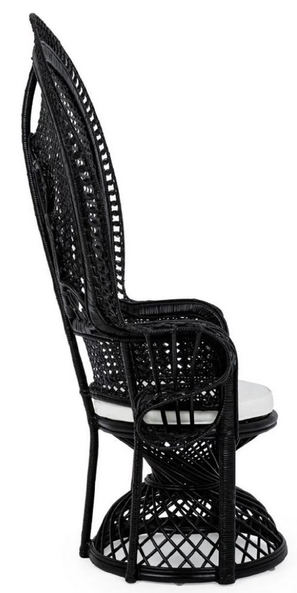 Casa Padrino sill¨®n de jard¨ªn de lujo negro / blanco 106 x 71 x A. 148 cm - Sill¨®n de rat¨¢n de estilo vintage con coj¨ªn de asiento - Muebles de rat¨¢n de estilo vintage - Muebles de jard¨ªn y patio