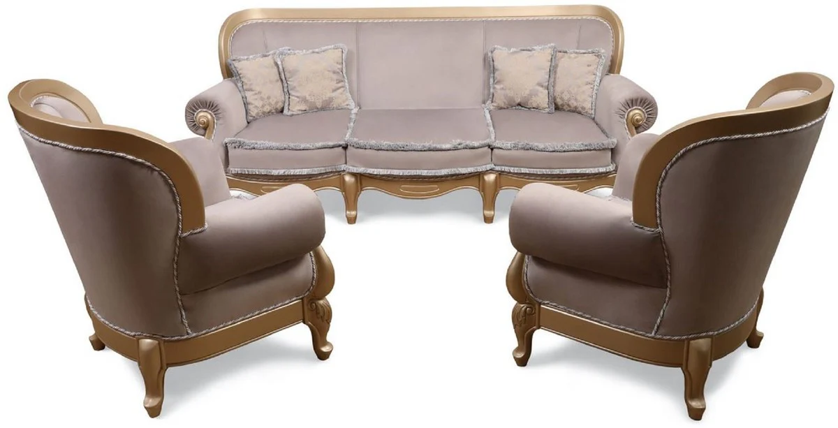 Casa Padrino sill¨®n de sal¨®n barroco de lujo gris / oro - Magn¨ªfico sill¨®n de estilo barroco - Muebles de sal¨®n de lujo en estilo barroco - Muebles barrocos - Noble y Magn¨ªfico