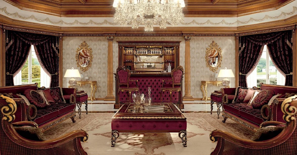 Casa Padrino sill¨®n barroco de lujo oro / negro - Magn¨ªfico sill¨®n de sal¨®n - Muebles de sal¨®n de estilo barroco - Muebles de lujo de estilo barroco - Mobiliario barroco