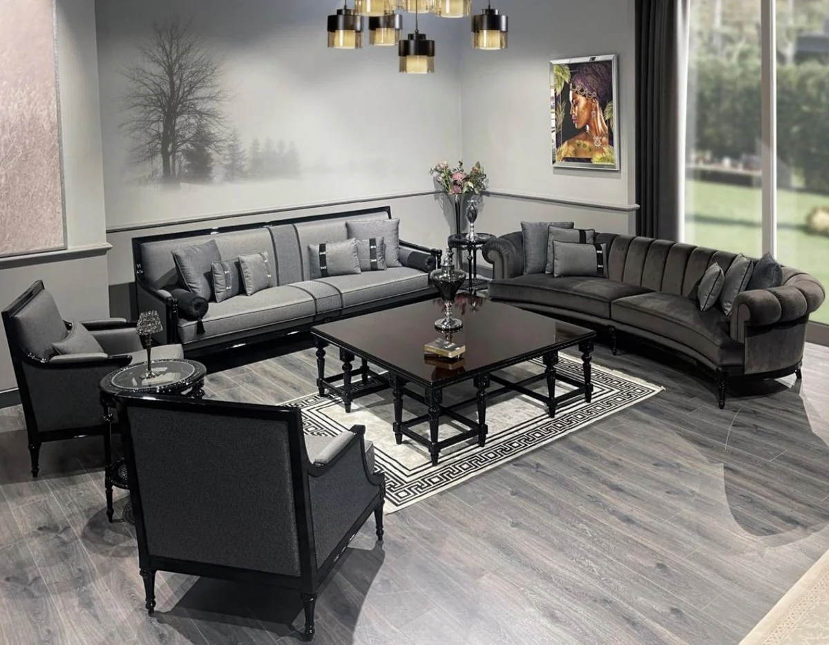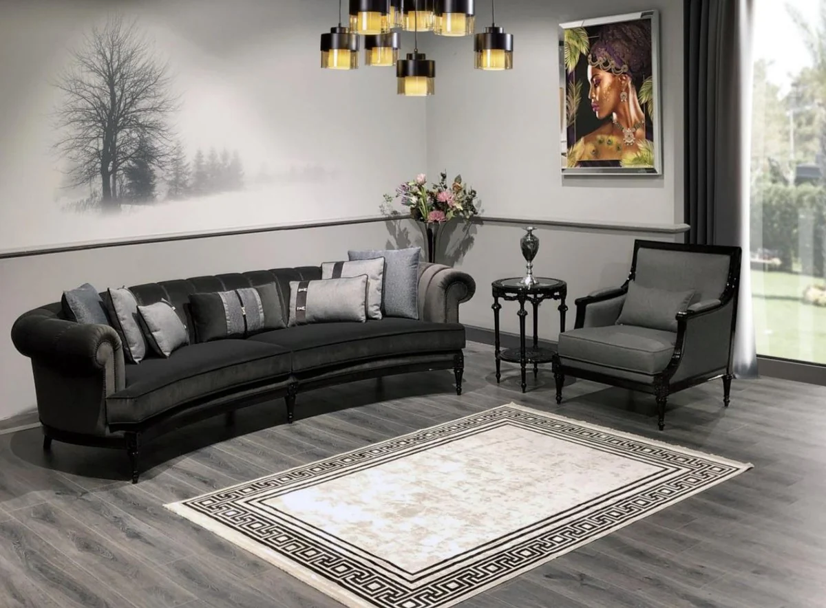 Casa Padrino sill¨®n barroco de lujo gris / negro - Magn¨ªfico sill¨®n de sal¨®n - Muebles de sal¨®n de estilo barroco - Muebles de lujo de estilo barroco - Mobiliario barroco - Noble y Magn¨ªfico