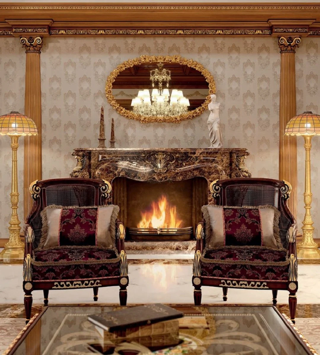 Casa Padrino sill¨®n barroco de lujo p¨²rpura / marr¨®n / oro - Sill¨®n de sal¨®n de estilo barroco con patr¨®n - Muebles barrocos - Muebles barrocos de sal¨®n - Calidad de lujo - Hecho en Italia