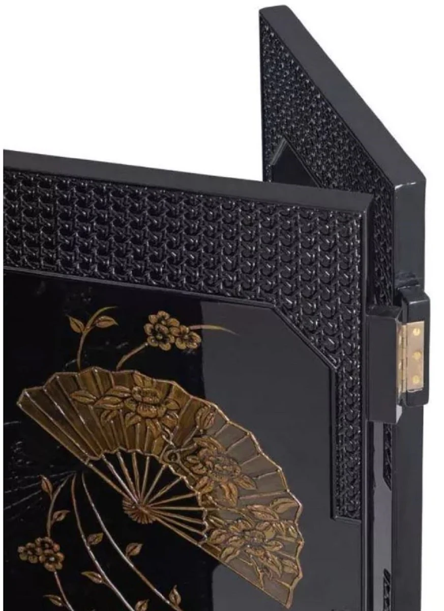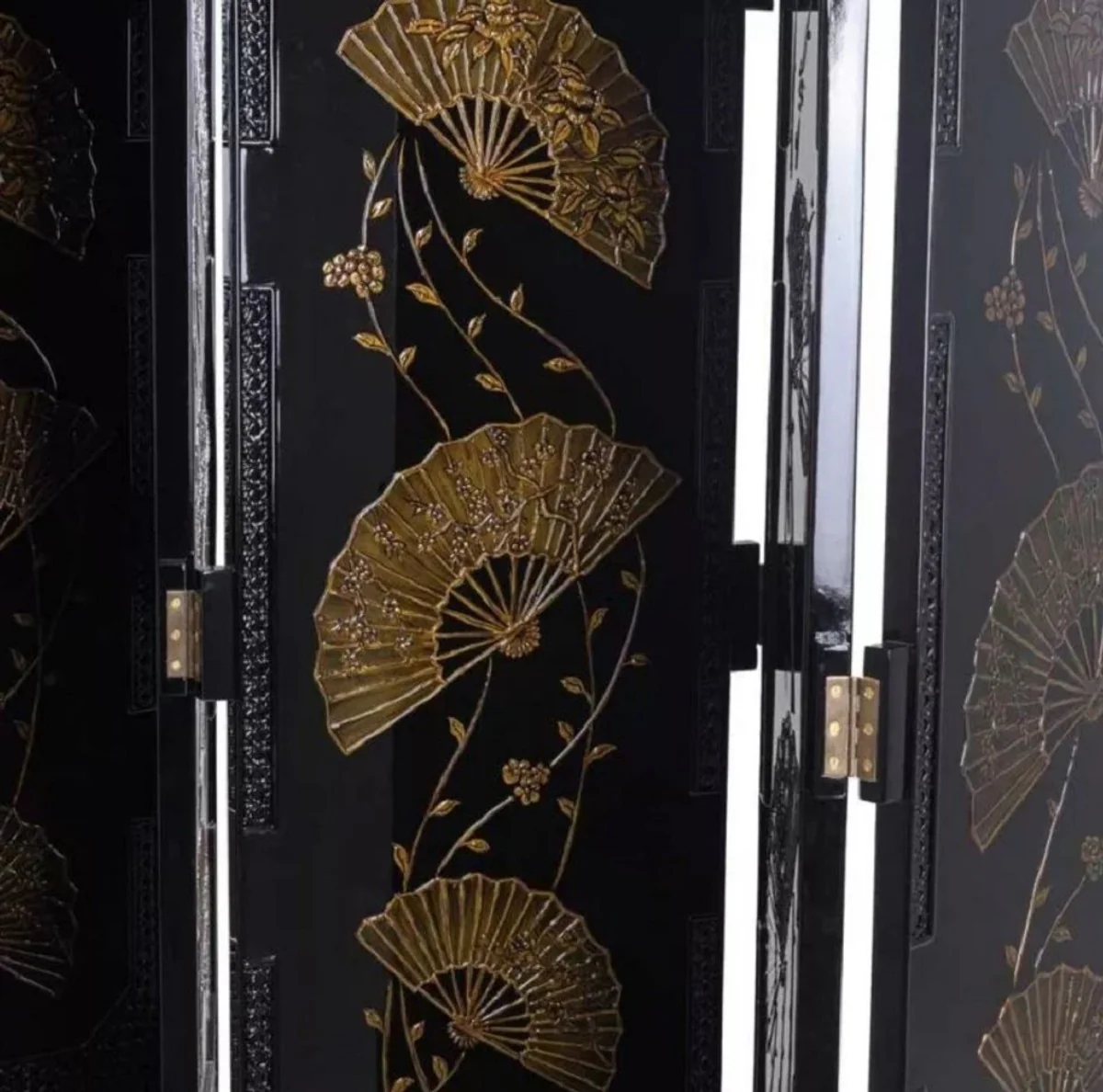 Casa Padrino separador de ambientes de lujo negro / oro 220 x 3 x A. 182 cm - Biombo plegable de madera maciza de estilo chino - Muebles de dormitorio - Muebles de hotel - Muebles de lujo
