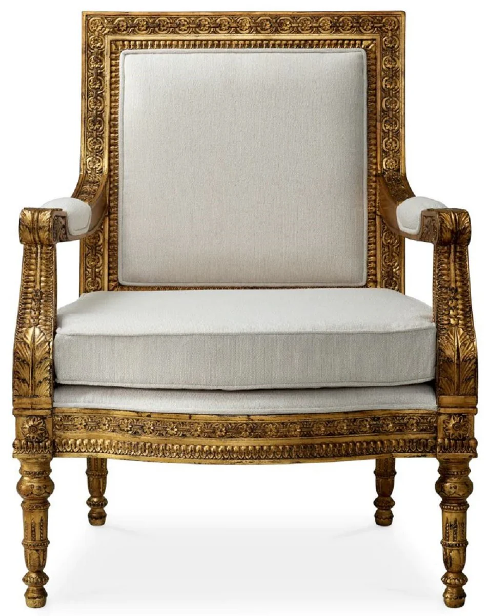 Casa Padrino sill¨®n barroco de lujo de caoba con coj¨ªn de asiento crema / oro antiguo - Magn¨ªfico sill¨®n estilo barroco para sal¨®n y hotel - Muebles barrocos para sal¨®n y hotel - Calidad de lujo