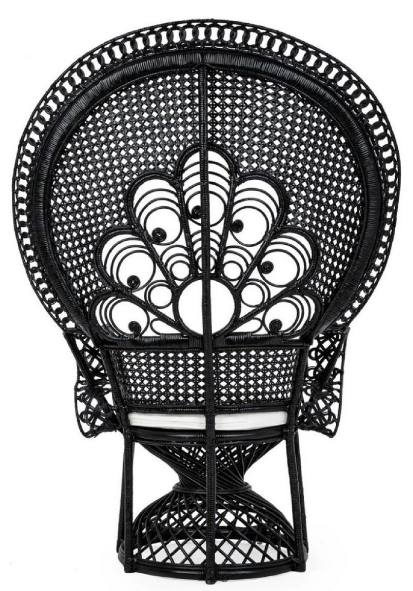 Casa Padrino sill¨®n de jard¨ªn de lujo negro / blanco 106 x 71 x A. 148 cm - Sill¨®n de rat¨¢n de estilo vintage con coj¨ªn de asiento - Muebles de rat¨¢n de estilo vintage - Muebles de jard¨ªn y patio