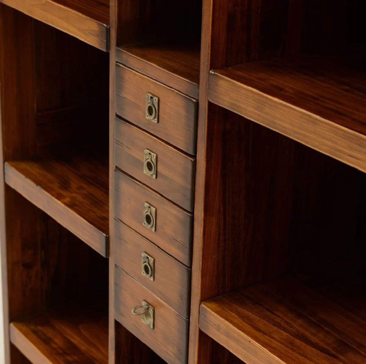 Casa Padrino armario de libros de estilo vintage de lujo marrón / latón 105 x 35 x A. 169 cm - Armario estante de madera maciza - Muebles de oficina - Muebles de estilo vintage de lujo