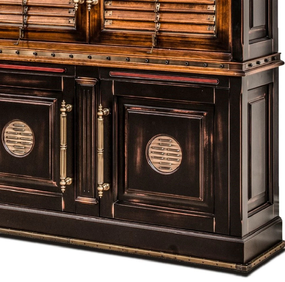 Casa Padrino Vitrina de Estilo Vintage de Lujo Marrón / Natural / Negro 226 x 56,5 x A. 216 cm - Vitrina de Madera Maciza con 2 Puertas y 4 Cajones - Muebles de Estilo Vintage - Muebles de Lujo