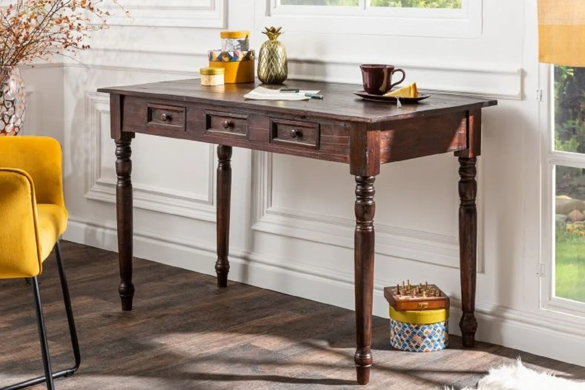 Casa Padrino escritorio de caoba de estilo campestre con 3 cajones marr¨®n oscuro 120 x 58 x H. 76 cm - Muebles de Oficina de Estilo Campestre