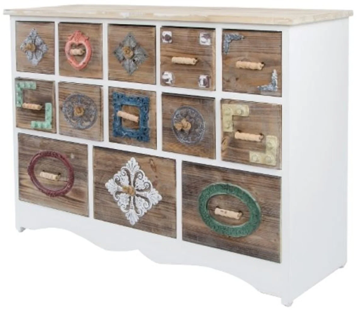 Casa Padrino cómoda de estilo country con 13 cajones blanco / multicolor 108 x 39 x H. 81 cm - Muebles de Estilo Country