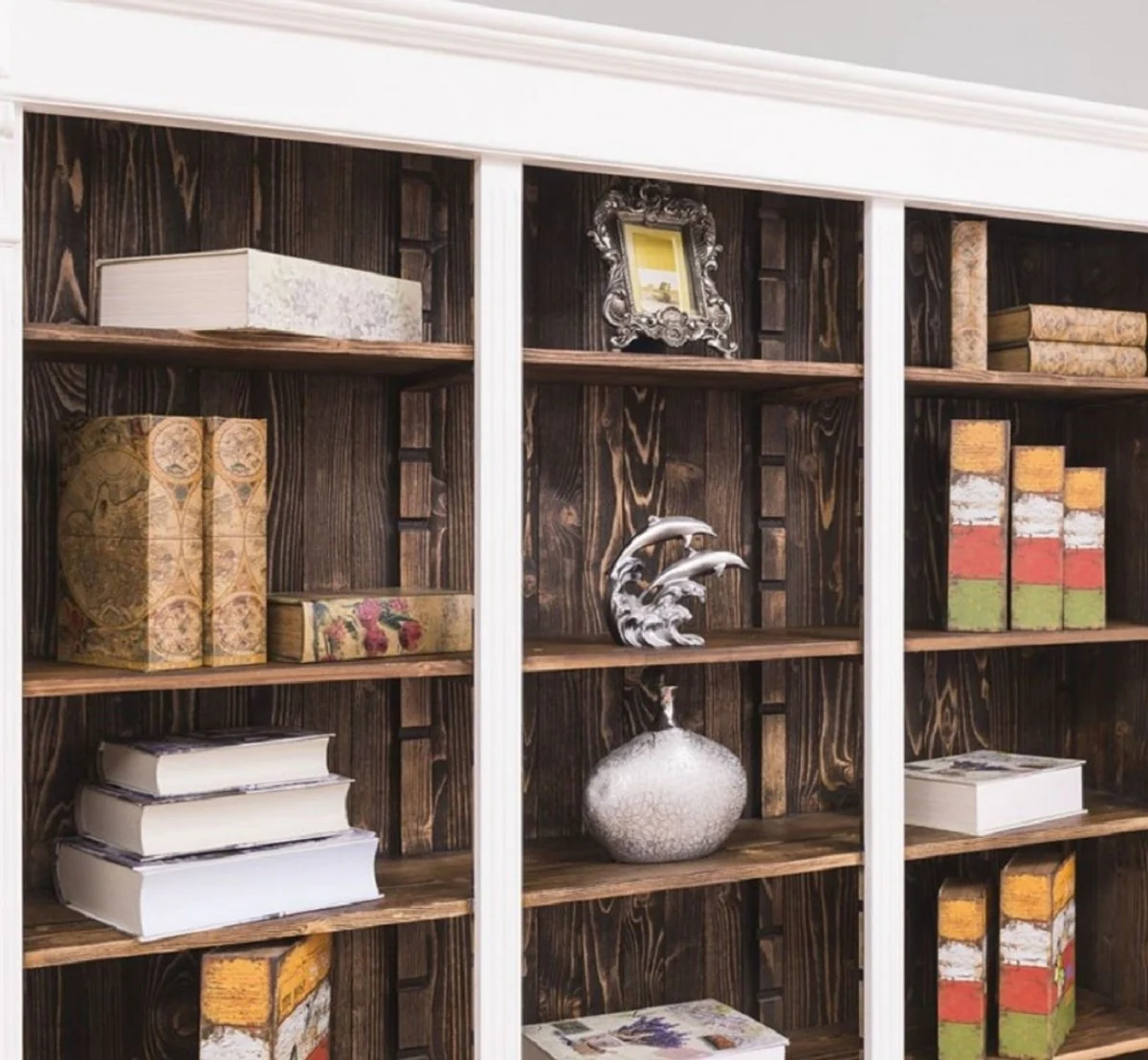 Casa Padrino armario de libros de estilo campestre blanco / marr¨®n oscuro 180 x 39 x A. 197 cm - Armario de sala de estar - Armario de oficina - Muebles de estilo campestre