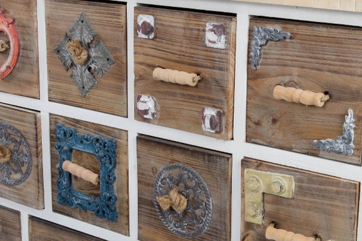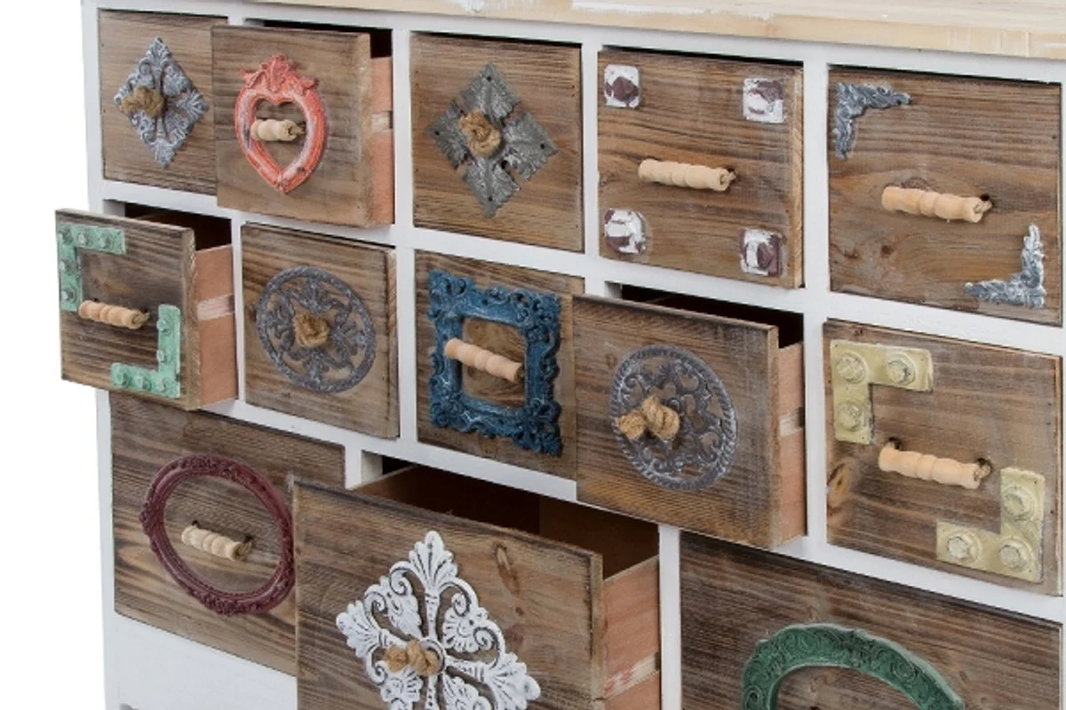 Casa Padrino c¨®moda de estilo country con 13 cajones blanco / multicolor 108 x 39 x H. 81 cm - Muebles de Estilo Country