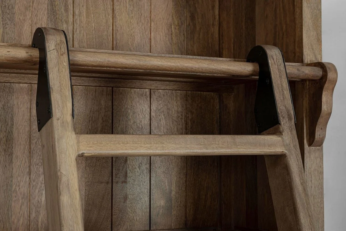 Casa Padrino armario de estilo campestre con escalera marr¨®n 143,5 x 40,6 x A. 233,7 cm - Armario de libros - Armario de Sala de Estar - Armario de Oficina - Muebles de Estilo Campestre
