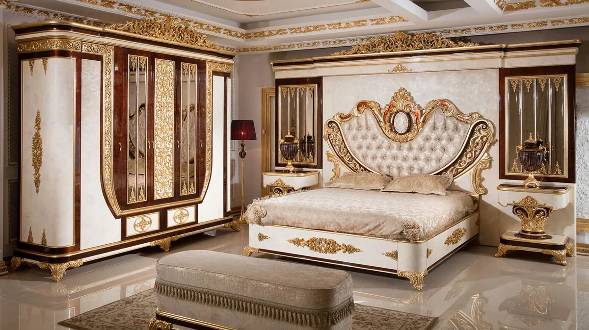 Casa Padrino armario de dormitorio barroco de lujo blanco / marr¨®n / oro - Magn¨ªfico guardarropa de madera maciza de estilo barroco - Muebles de dormitorio barroco - Noble y Magn¨ªfico