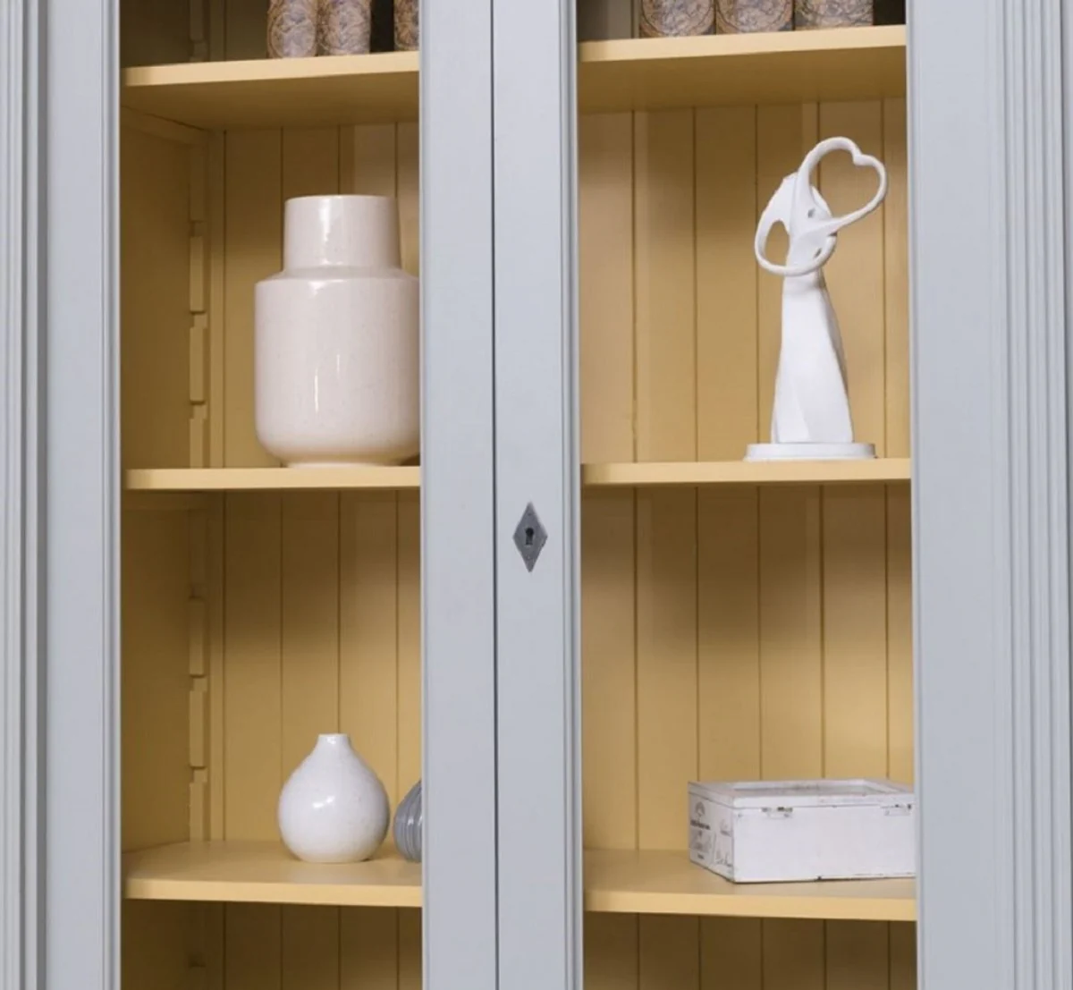 Casa Padrino armario de libros de estilo campestre gris / amarillo 120 x 39 x A. 197 cm - Armario de madera maciza - Armario de sala de estar - Armario de oficina - Muebles de estilo campestre