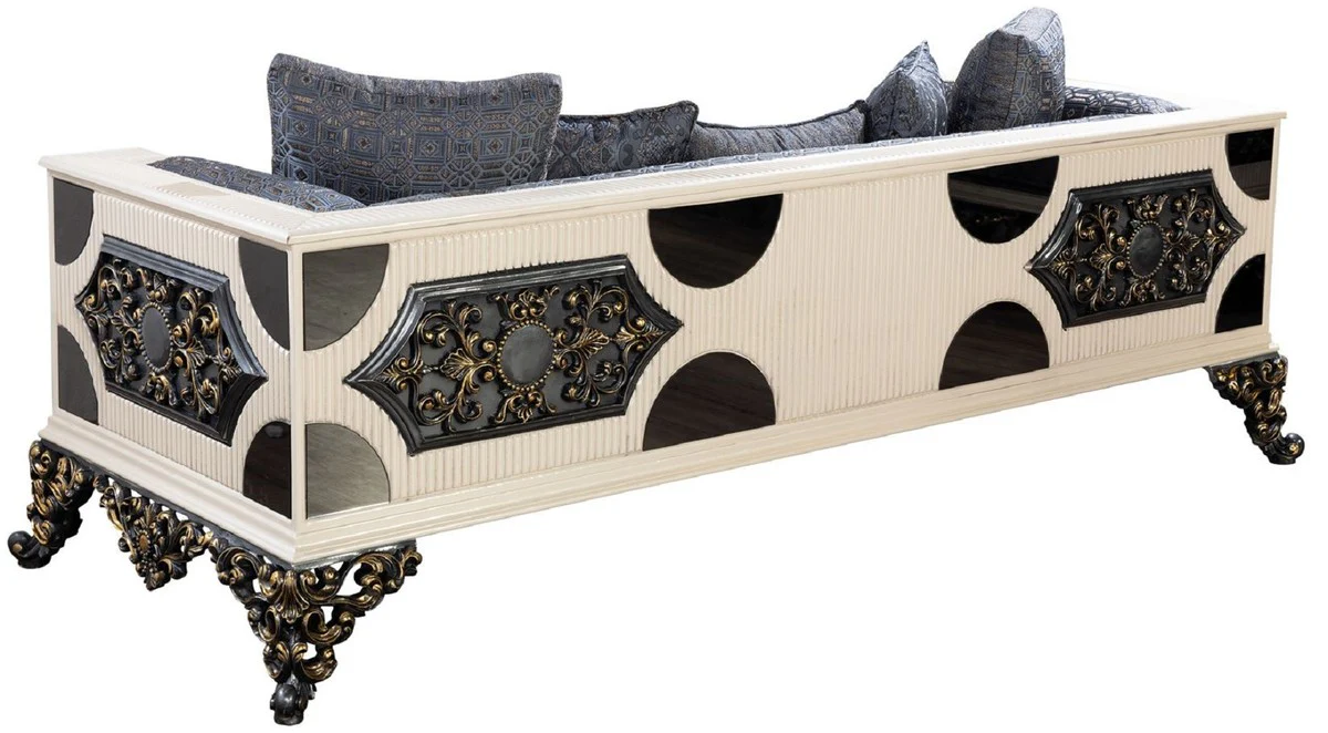 Casa Padrino sof¨¢ barroco de lujo blanco / beige / crema / negro / oro - Sof¨¢ de sal¨®n de estilo barroco con patr¨®n elegante - Muebles de sal¨®n de lujo en estilo barroco - Muebles barrocos