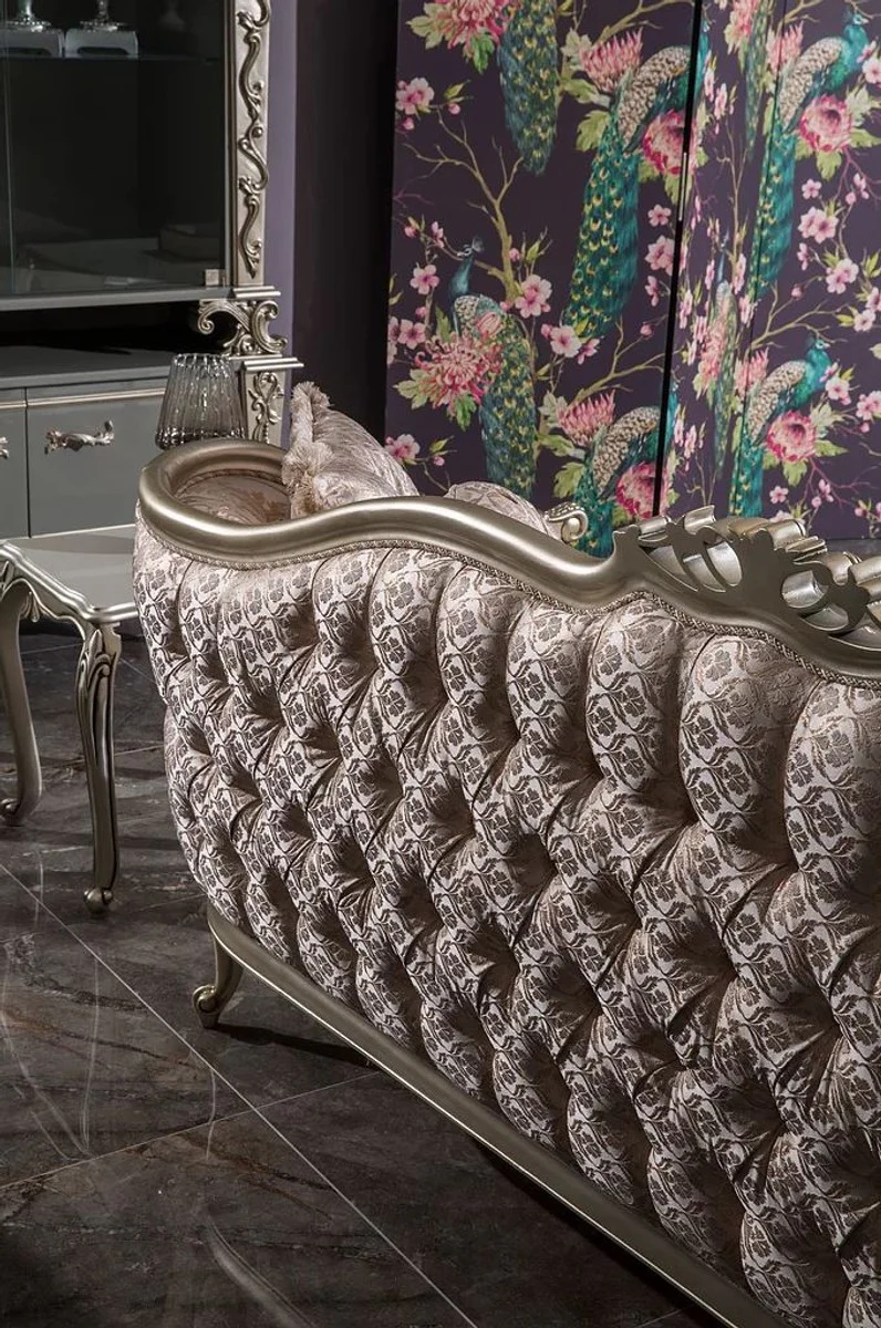 Casa Padrino sof¨¢ de sal¨®n barroco de lujo beige / plata 300 x 95 x A. 115 cm - Sof¨¢ en estilo barroco magn¨ªfico - Muebles de sal¨®n barrocos nobles