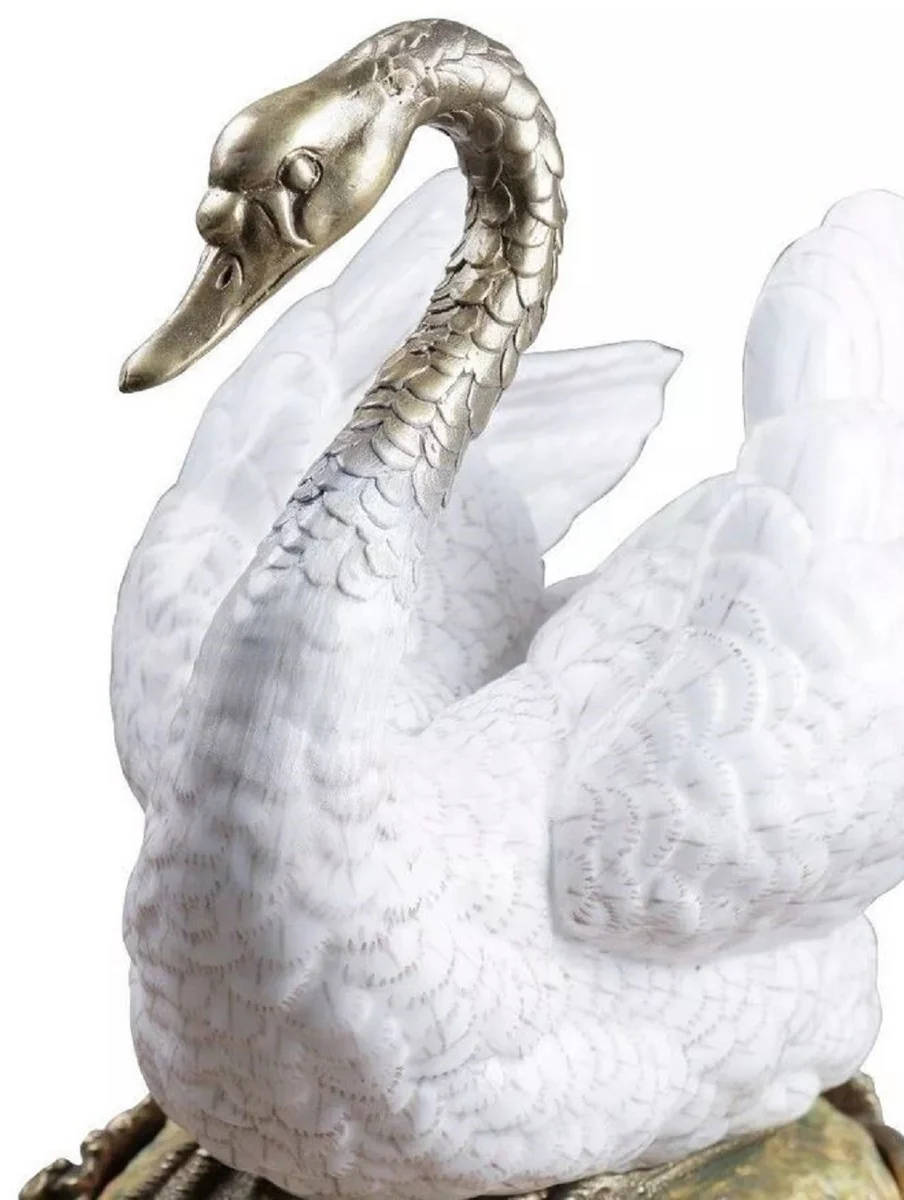 Casa Padrino figura decorativa de porcelana barroco cisne blanco / bronce 20 x 18 x A. 24 cm