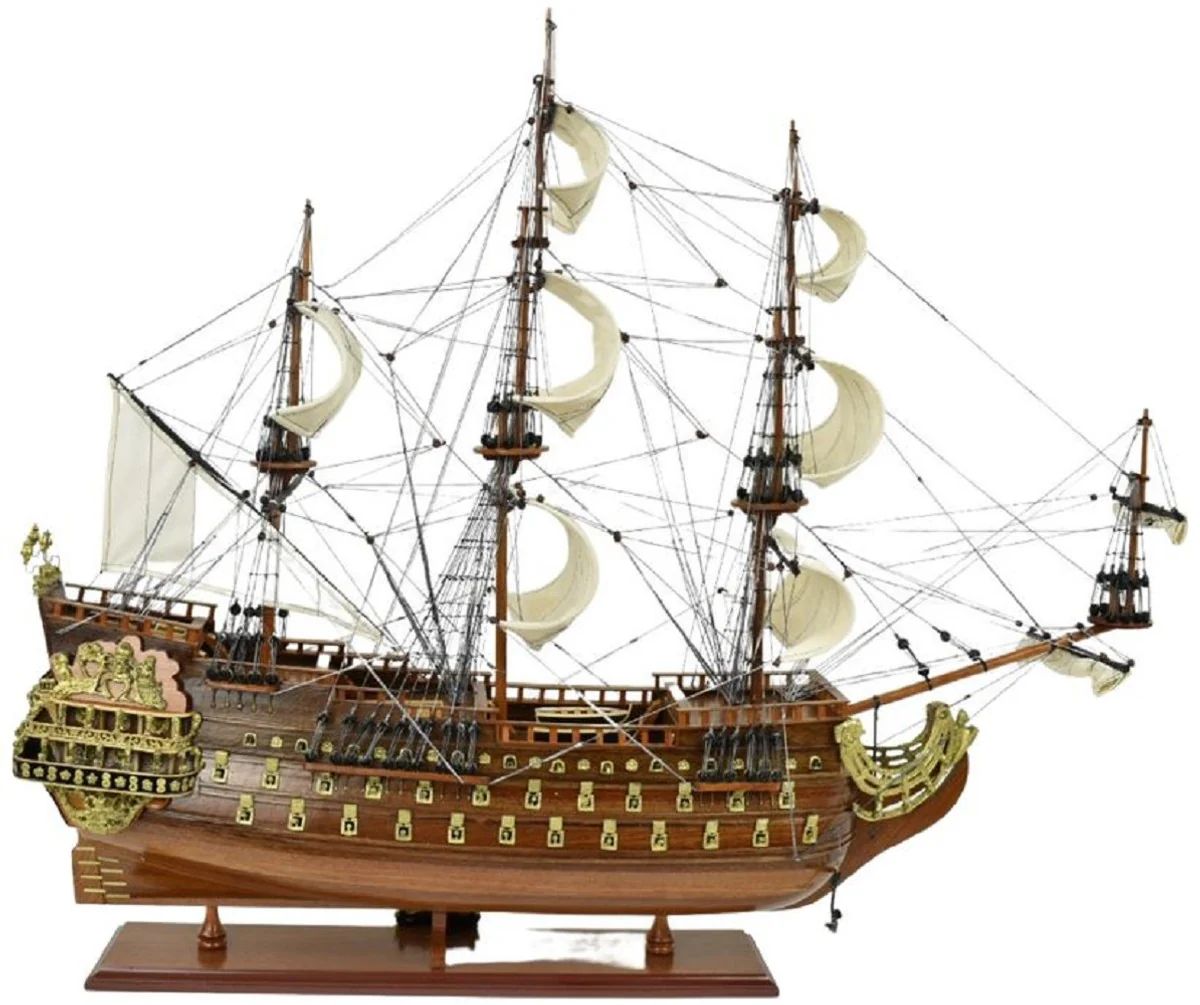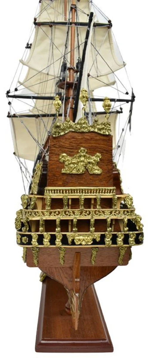 Casa Padrino buque insignia Soleil Royal marrón 95 x 29 x A. 90 cm - Barco decorativo hecho a mano - Barco de madera - Velero - Barco de guerra - Maqueta de barco - Accesorios decorativos