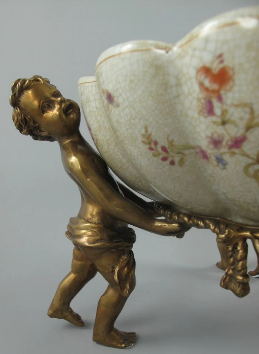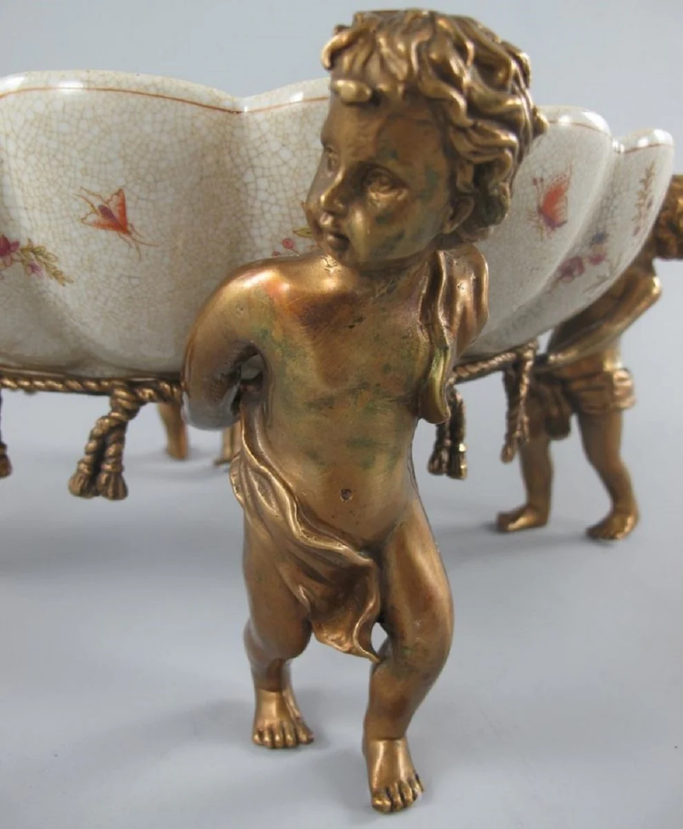 Casa Padrino cuenco de porcelana Art Nouveau con 4 figuras de ángel decorativas crema / multicolor / latón 40 x 30 x A. 17 cm - Accesorios Decorativos Barrocos y Art Nouveau