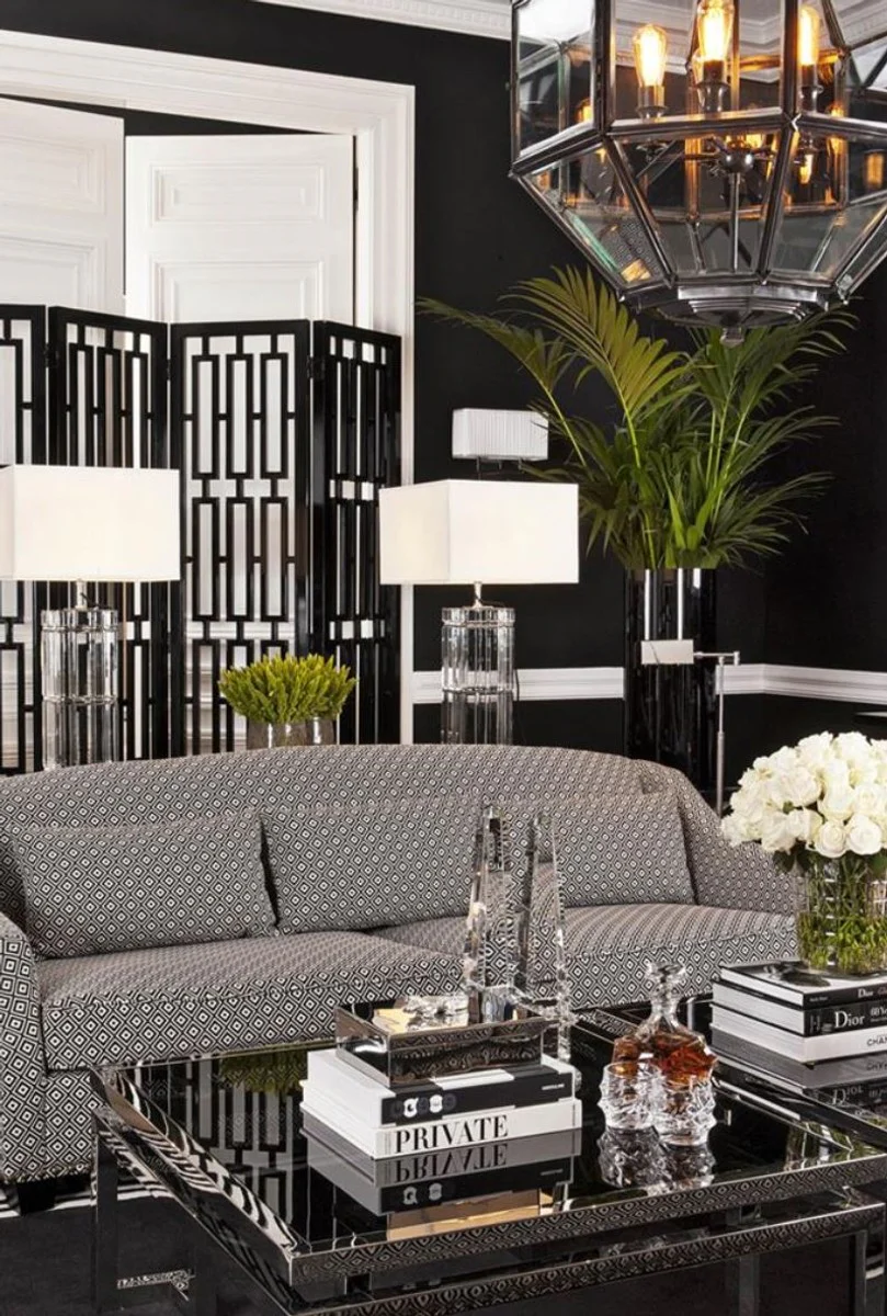 Casa Padrino cojín de lujo negro / blanco 40 x 40 cm - Accesorios de Decoración de la Sala de Estar