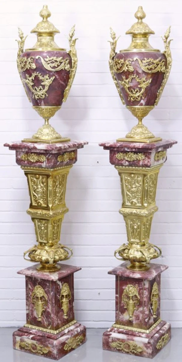 Casa Padrino baroque vases with marble pillars set red / gold 30 x 30 x H. 180 cm - Noble & Sumptuous