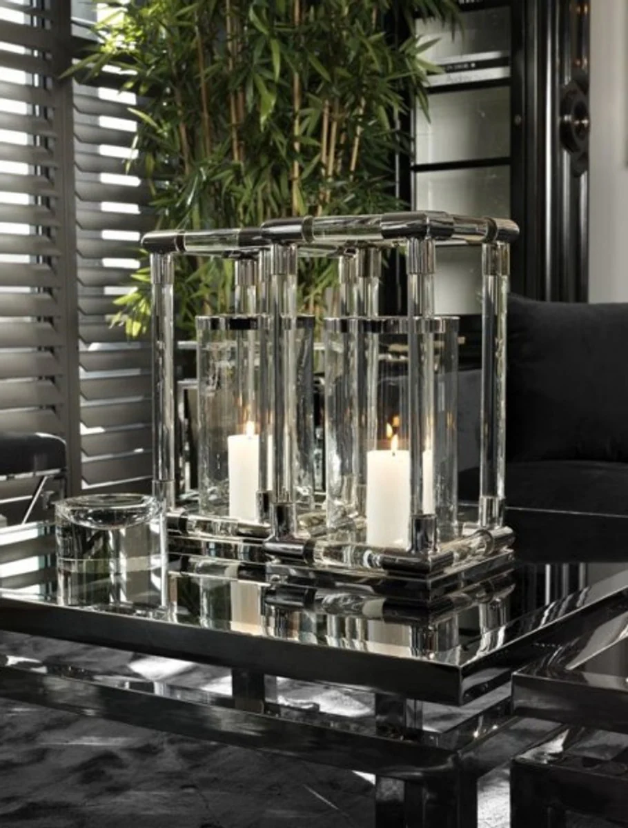 Casa Padrino luxury candle holder / lantern nickel finish 24 x H. 45 cm - Limited Edition