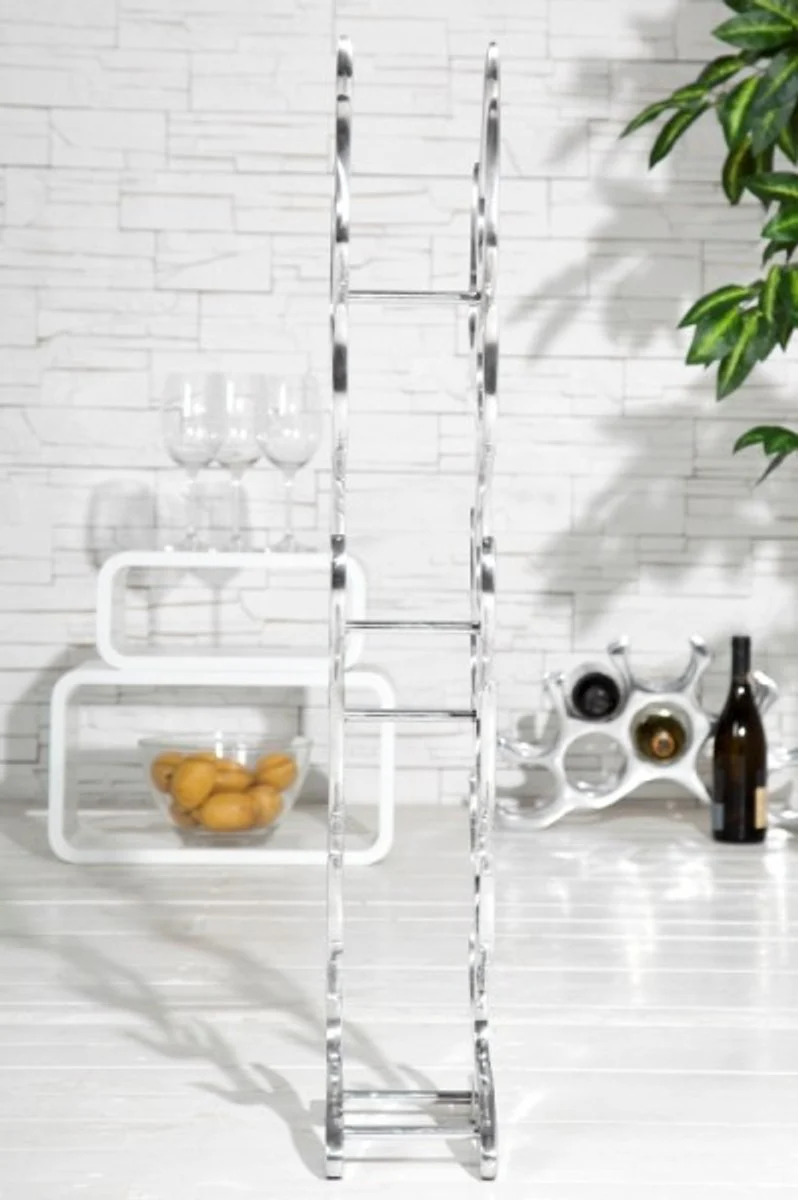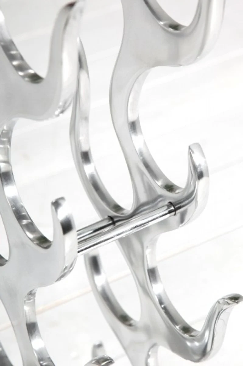 Designer wine rack for 9 bottles of polished aluminum height: 93 cm, width 27 cm, depth: 14 cm - bottle holder, bottle rack flames flame design