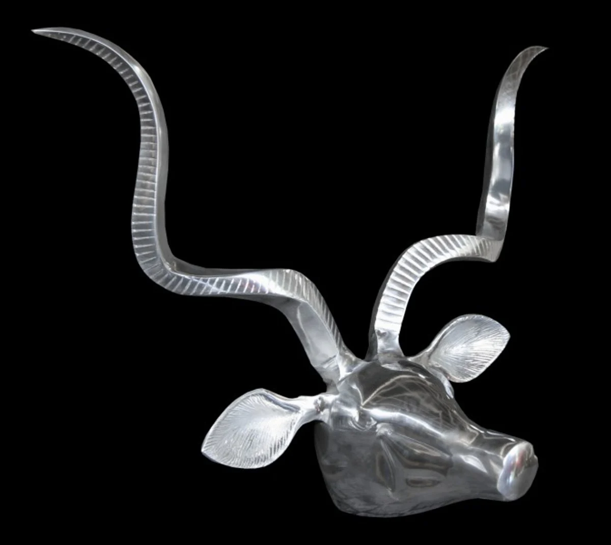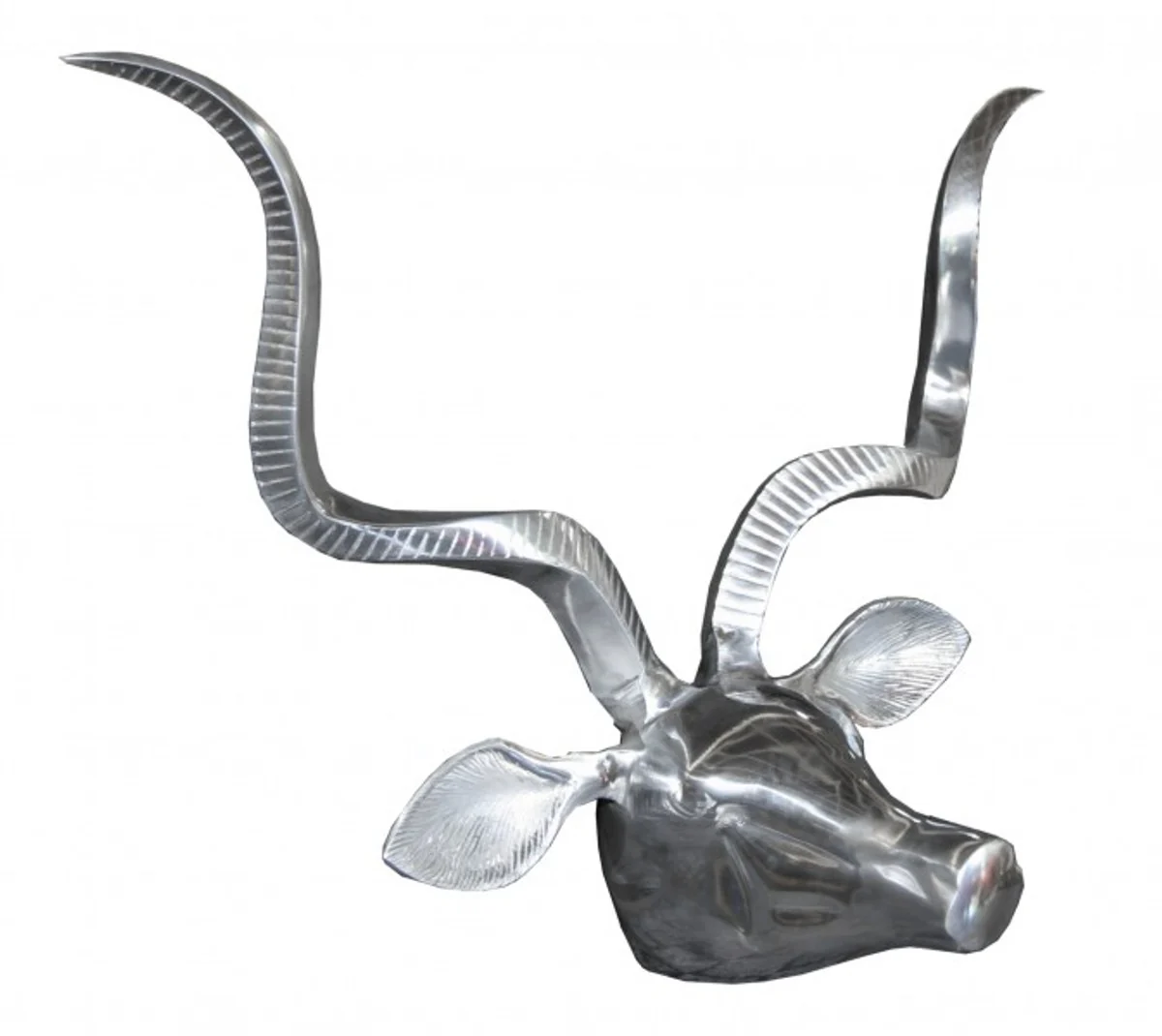 Casa Padrino designer deco antelope antlers in polished aluminum silver H 75 cm, W 67 cm - Wall Figurine - antlers - antlers wall