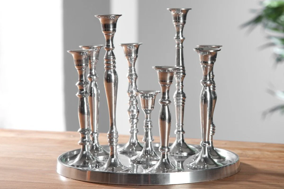Designer candle holder made ??of polished aluminum, 9-lights - Shine Classic - Candlesticks