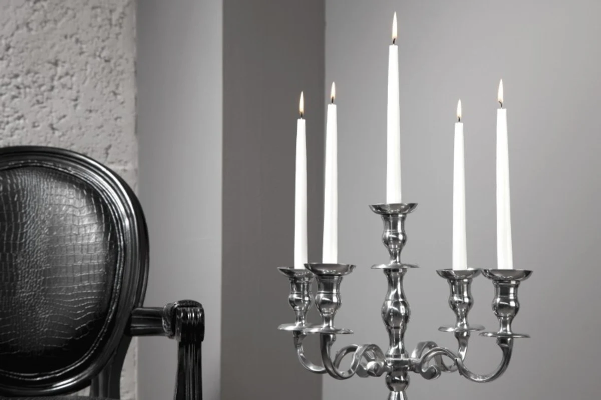 Casa Padrino Designer Candle Holder Polished aluminum Silver Shine Classic 5-Arm Height 80 cm - Candlesticks