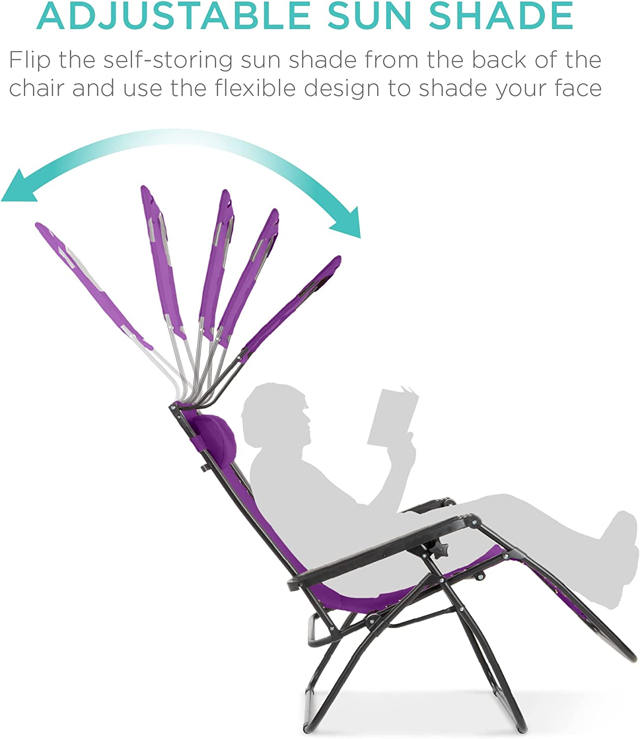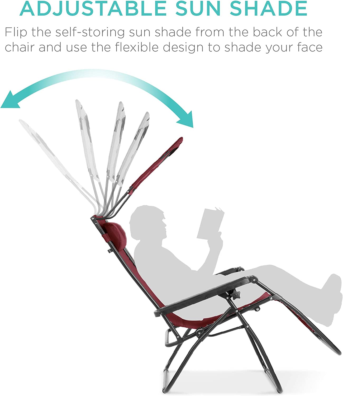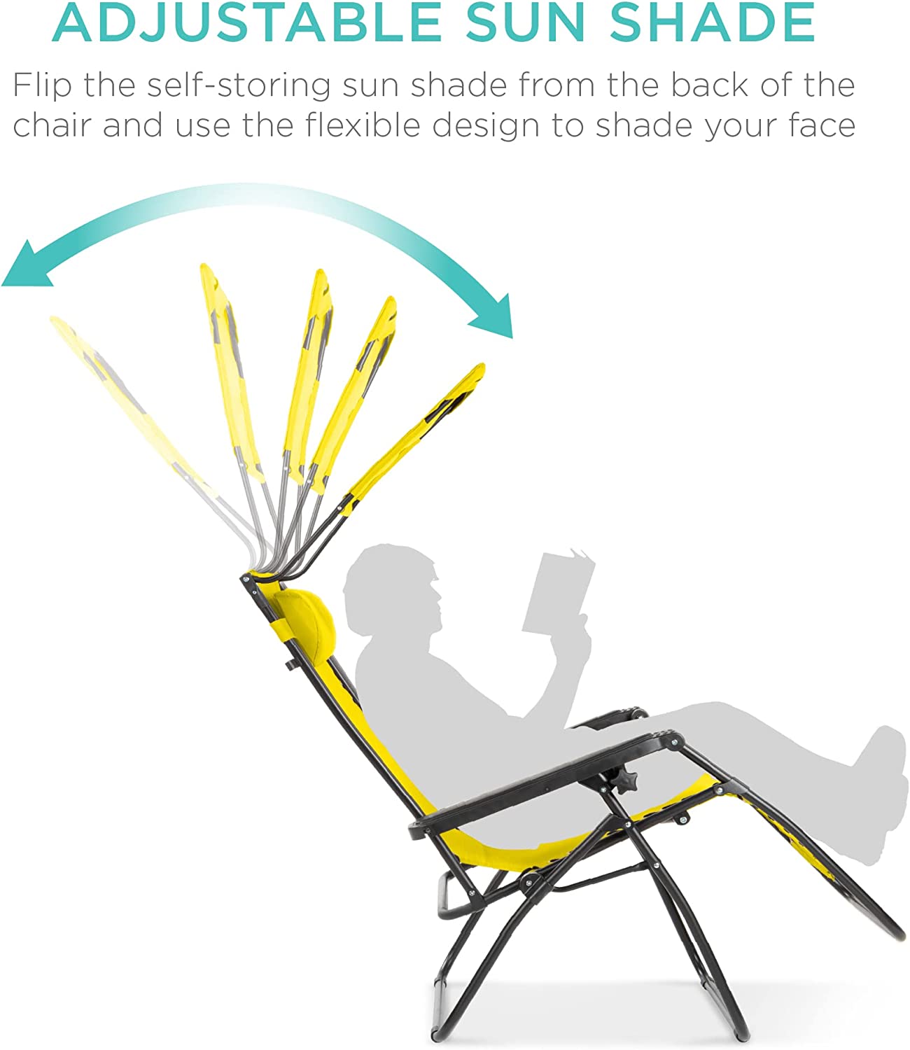 Folding Zero Gravity Outdoor Recliner Patio Lounge Chair w/Adjustable Canopy Shade, Headrest, Side Accessory Tray, Textilene Mesh - Beige