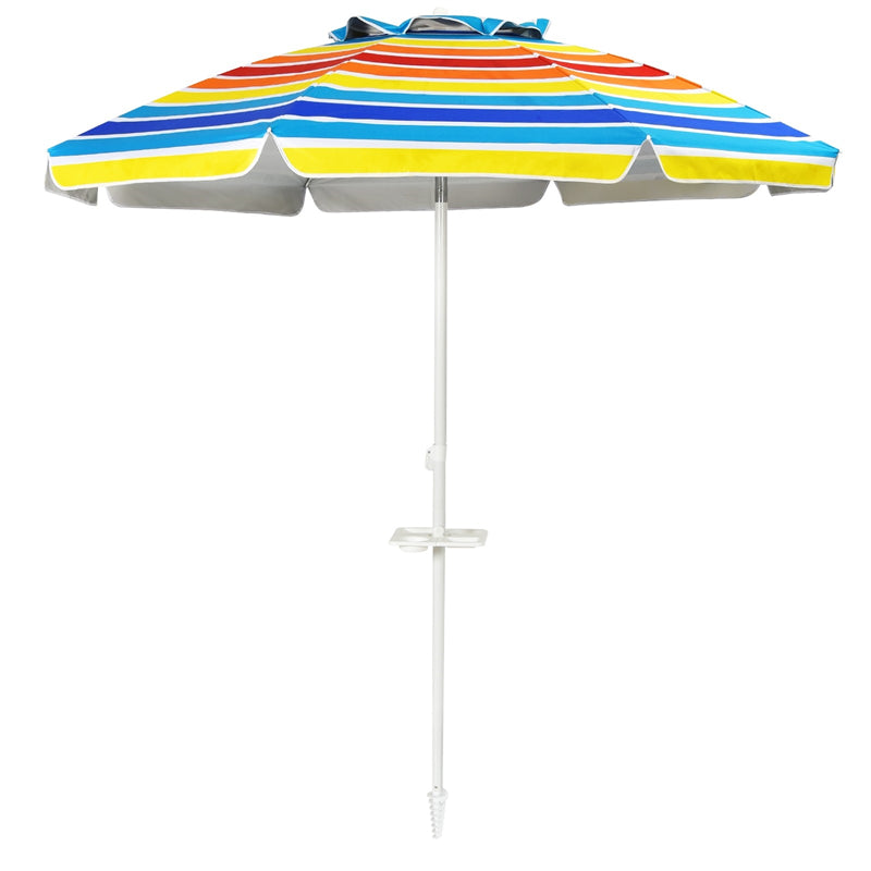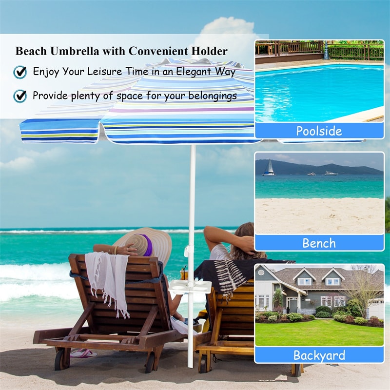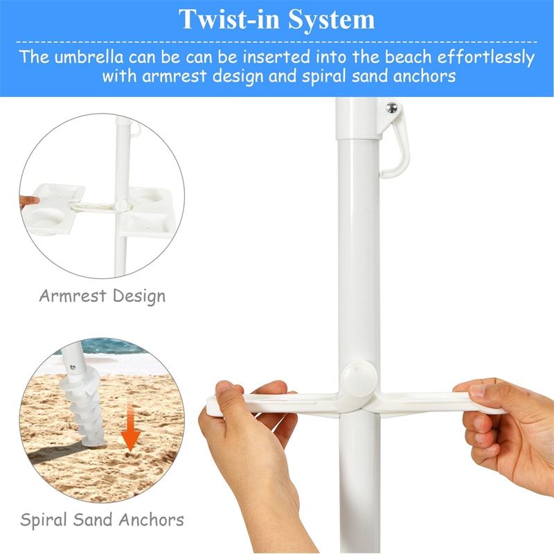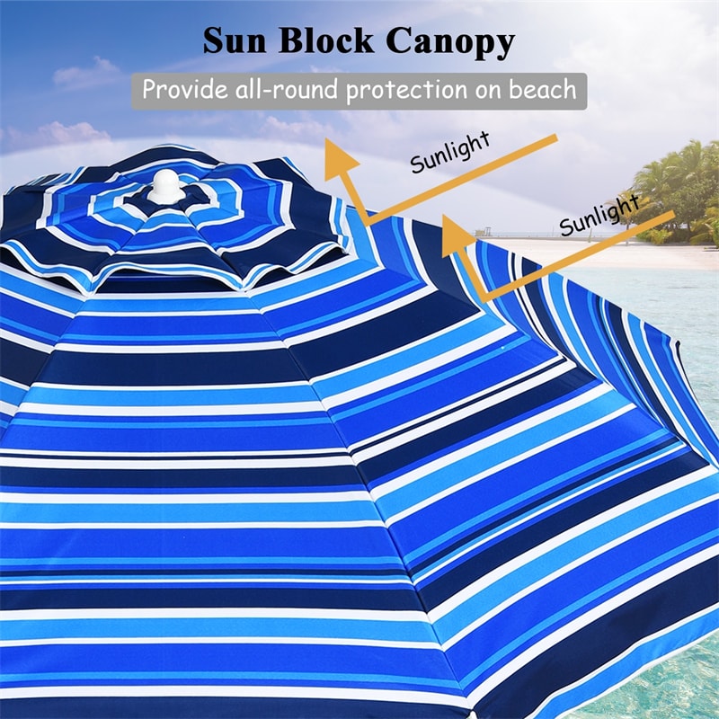 7.2 FT Portable Outdoor Beach Umbrella with Sand Anchor and Tilted Pole