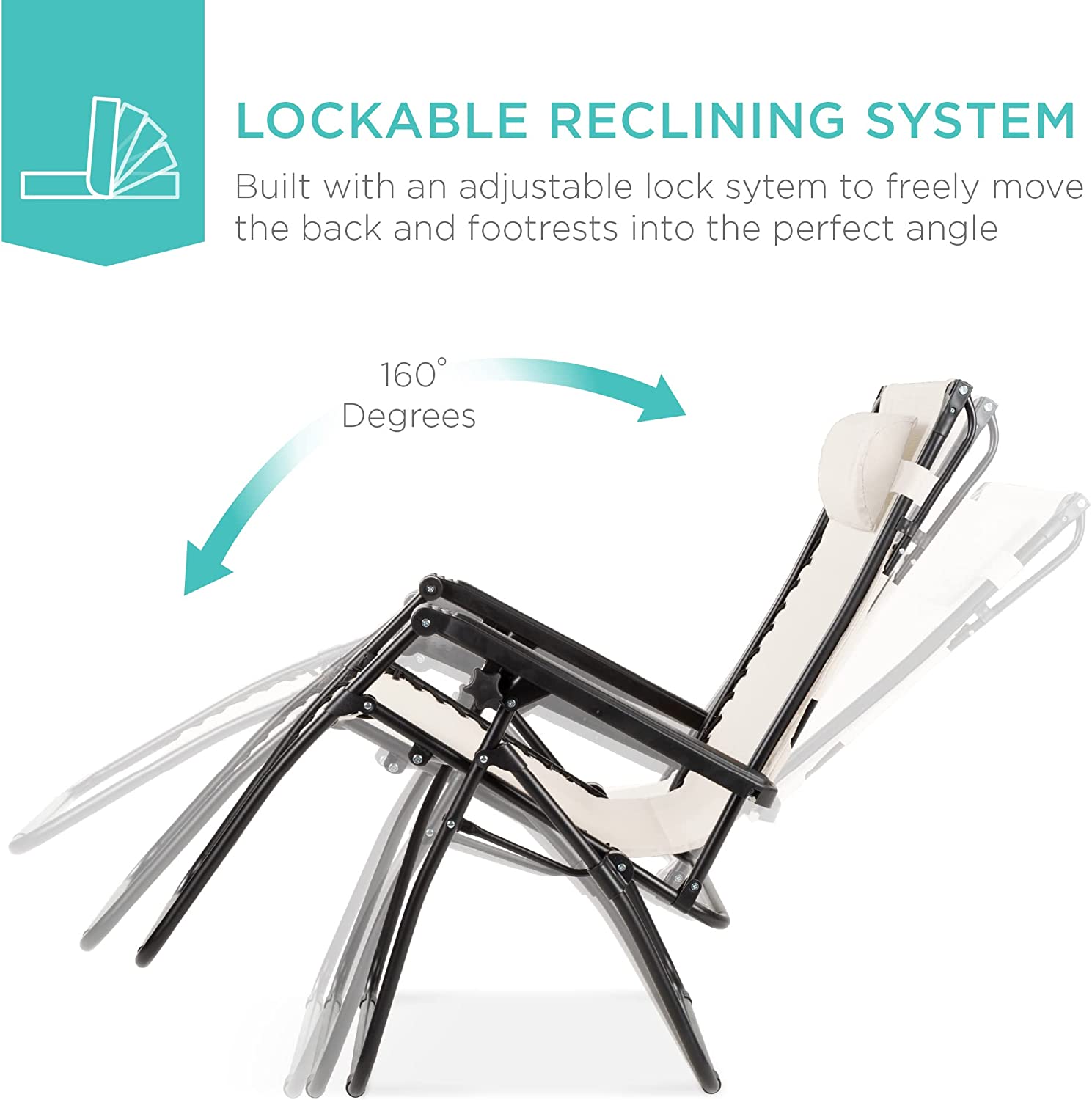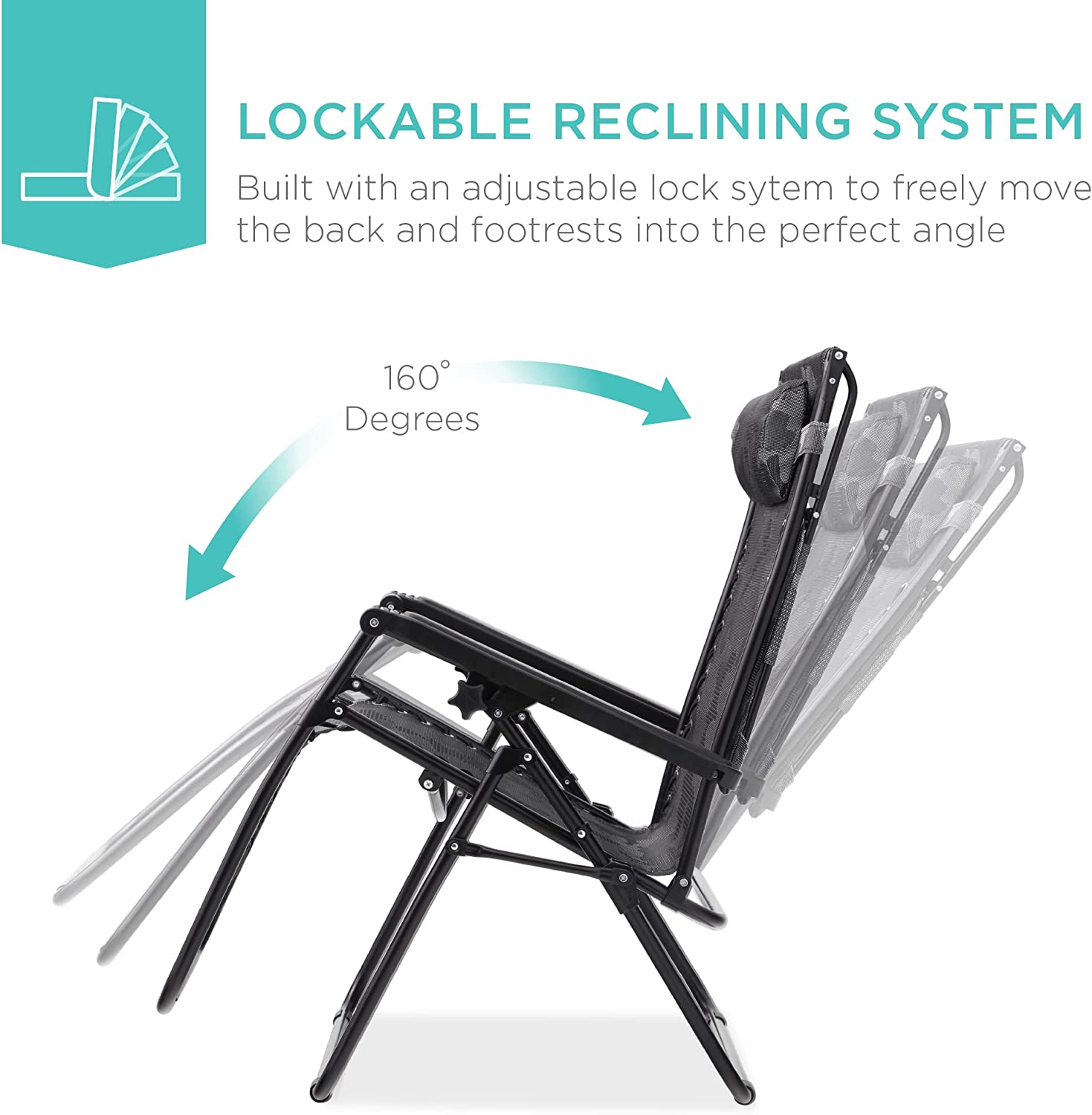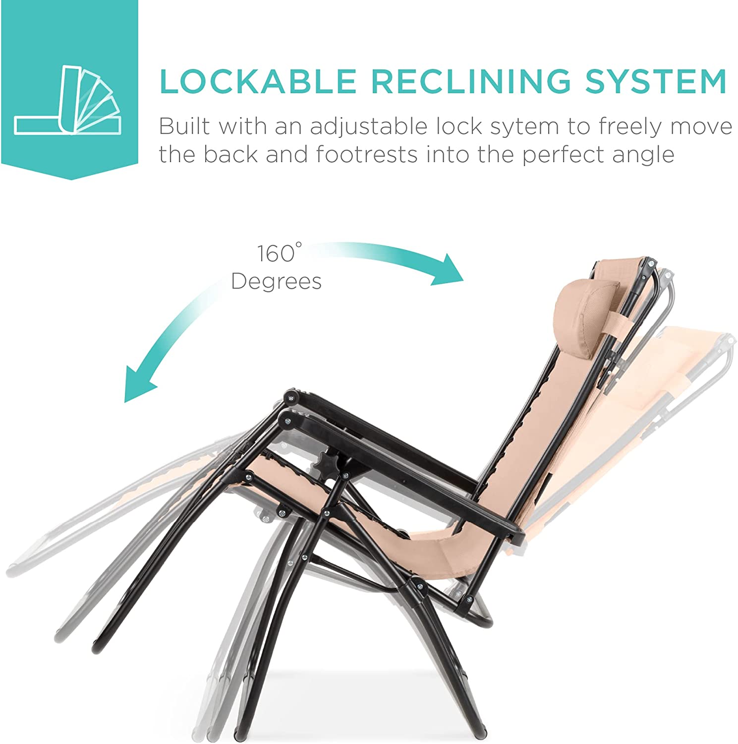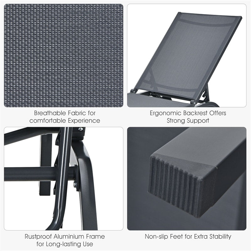 Adjustable 4-Position Folding Chaise Lounge Chair with Pillow Pocket, Supports 265lbs