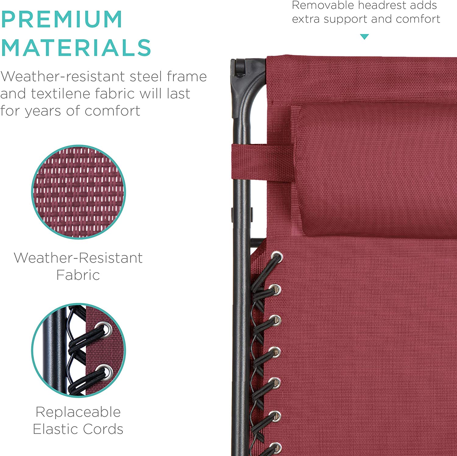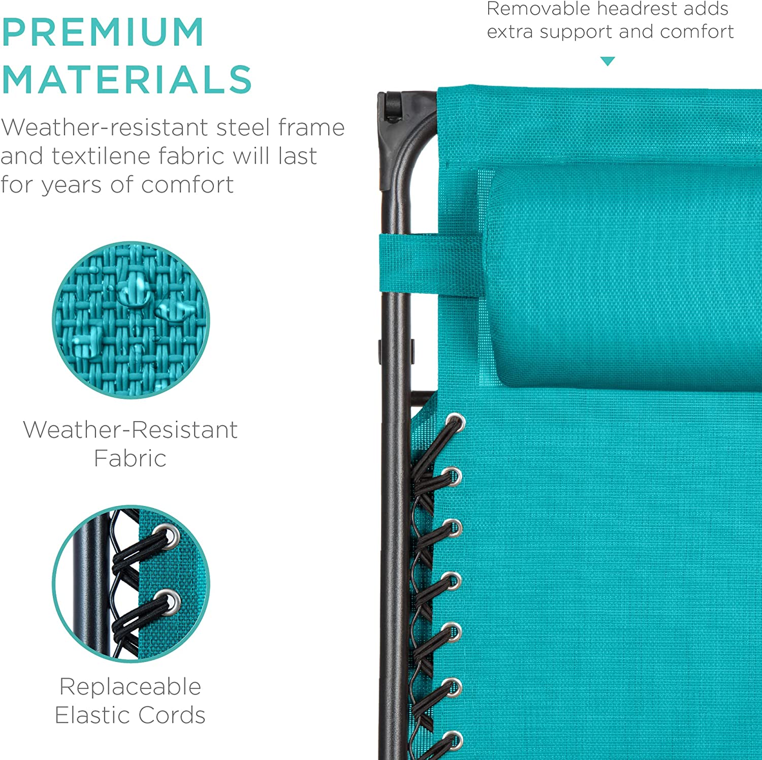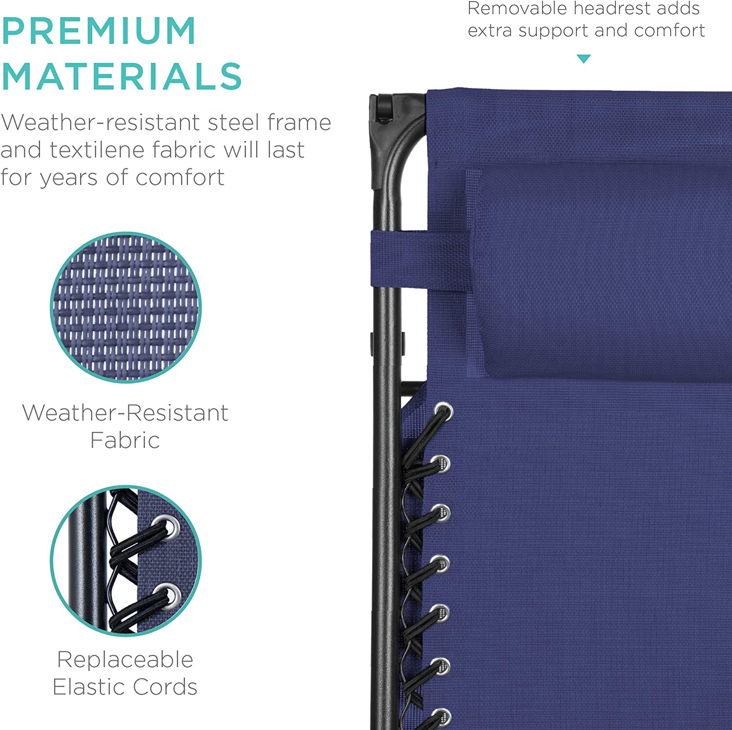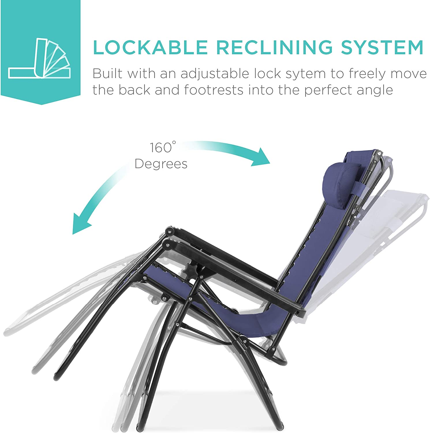 Adjustable 4-Position Folding Chaise Lounge Chair with Pillow Pocket, Supports 265lbs