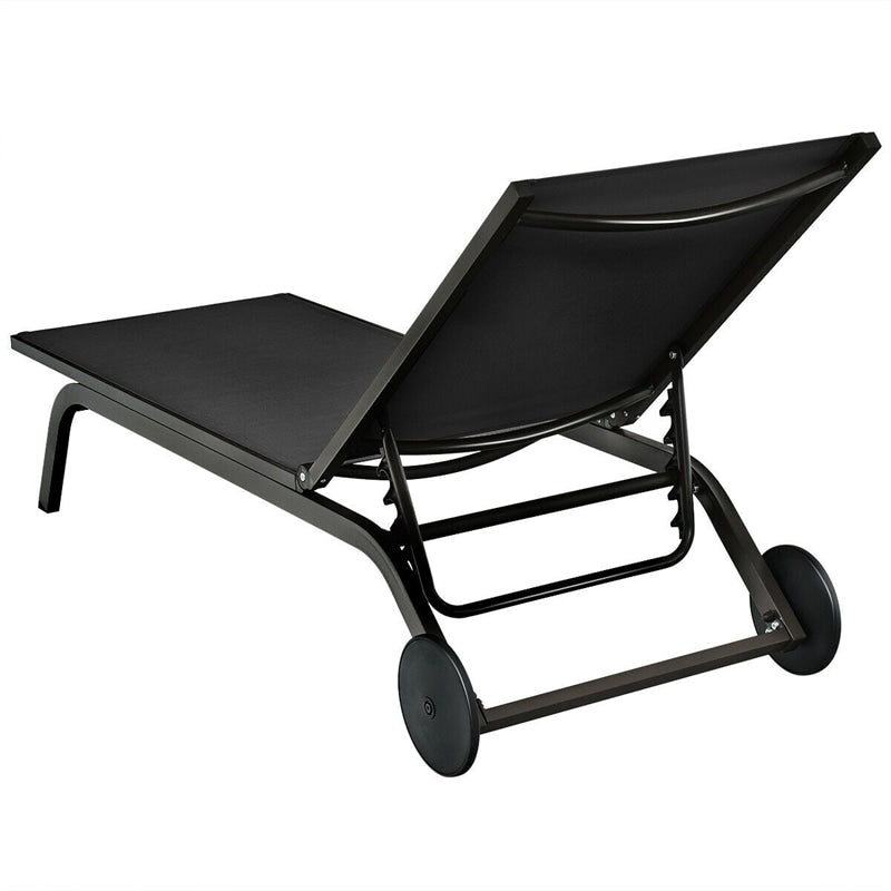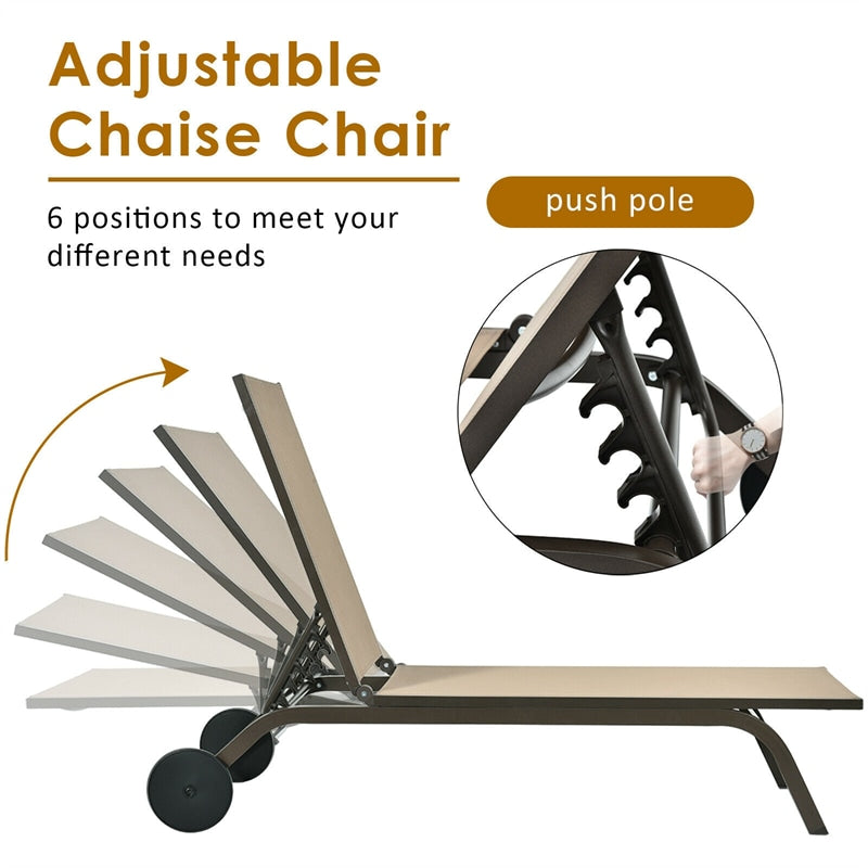 6-Position Adjustable Patio Chaise Lounge Chair Outdoor Beach Recliner with Wheels