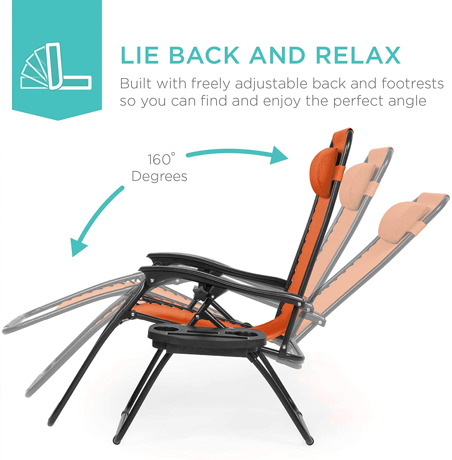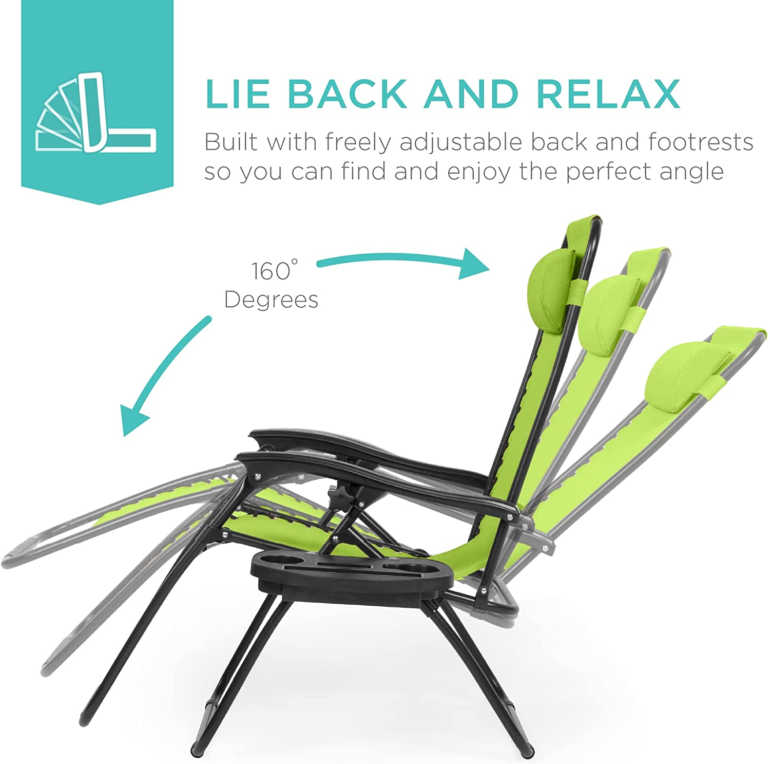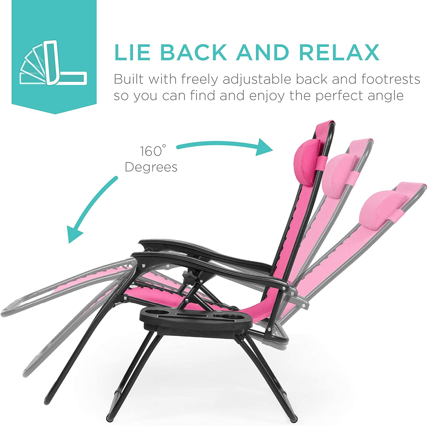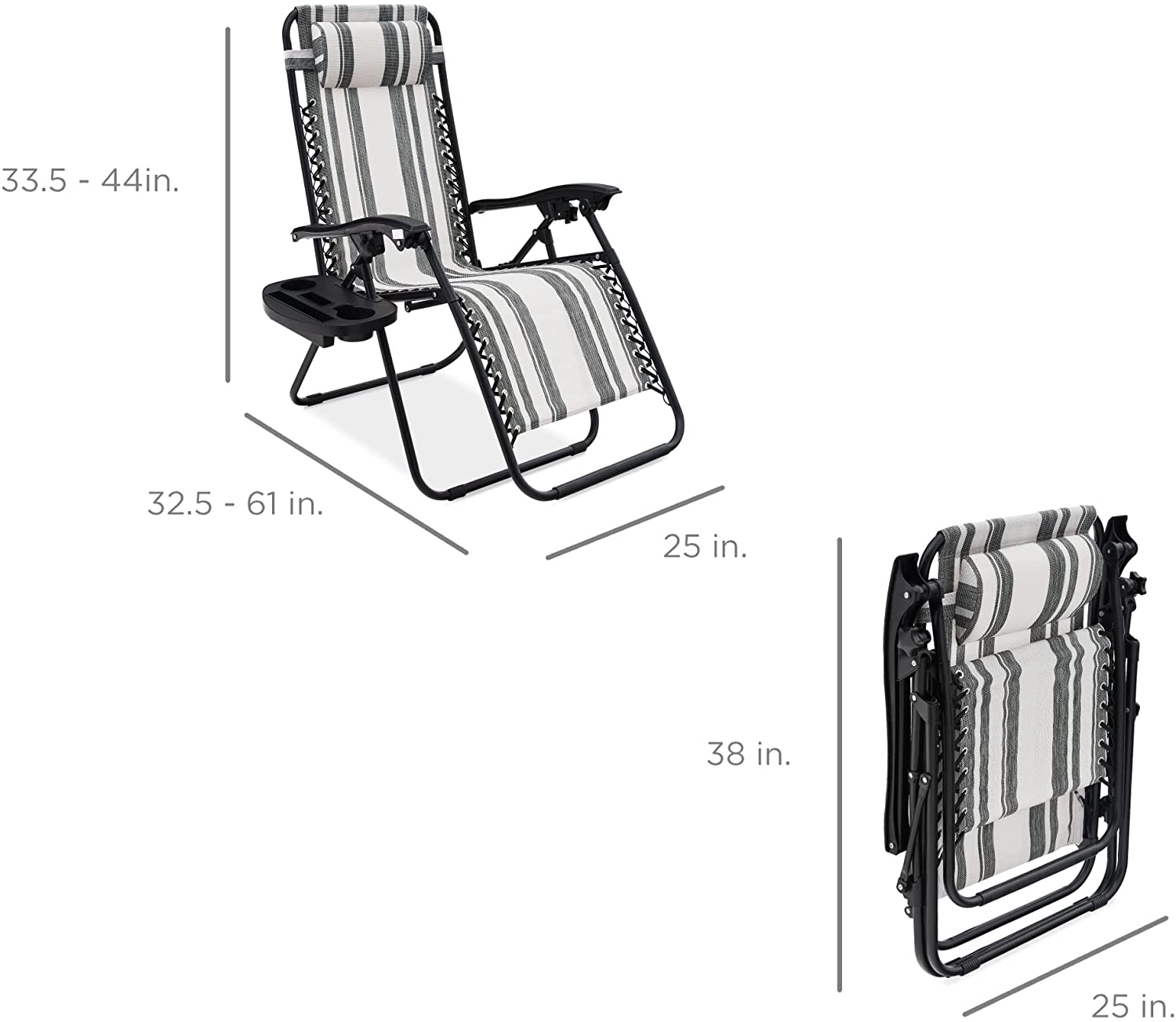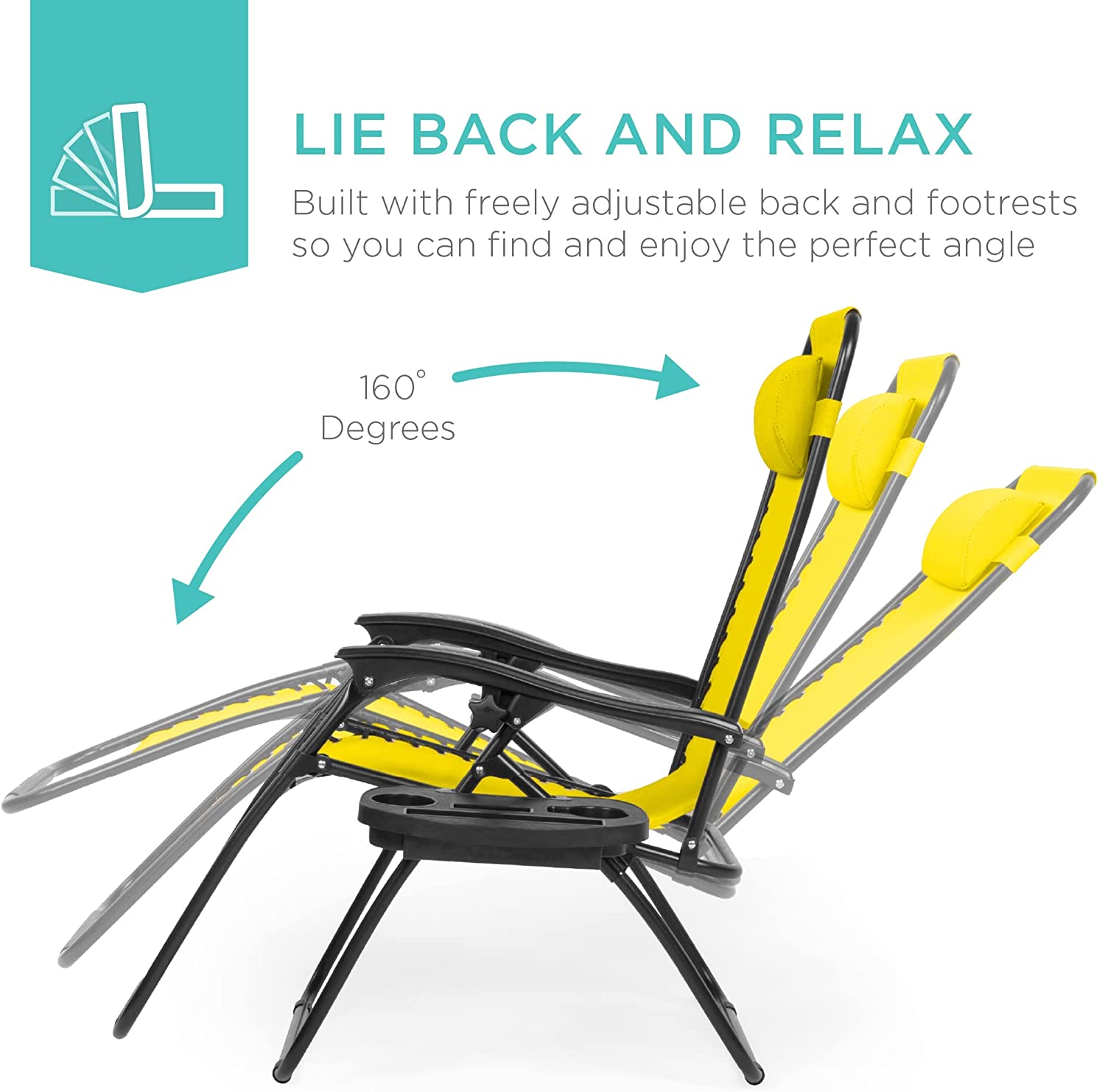 Set of 2 Adjustable Steel Mesh Zero Gravity Lounge Chair Recliners w/Pillows and Cup Holder Trays