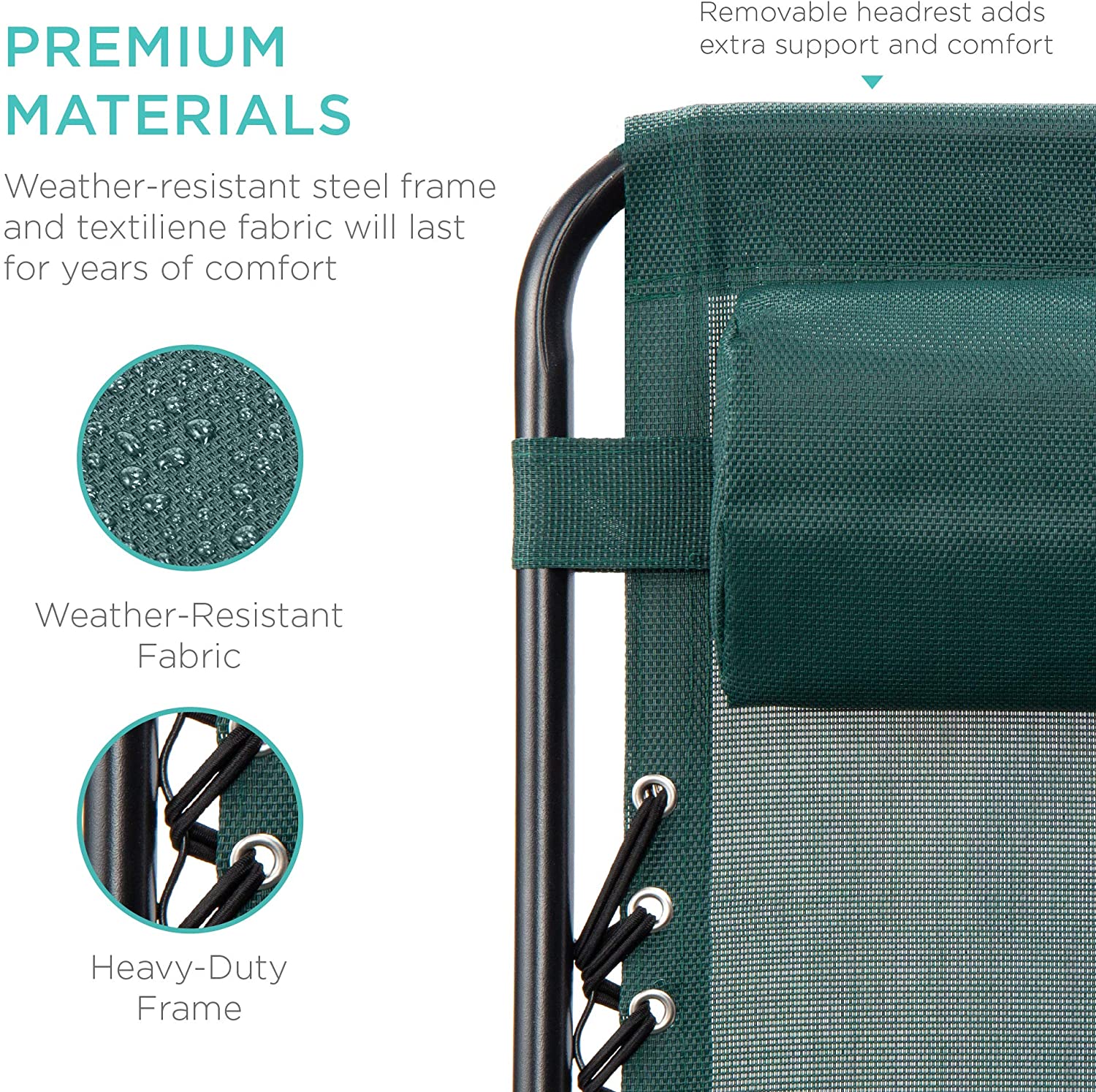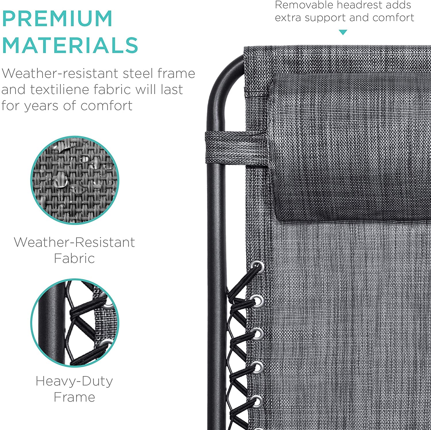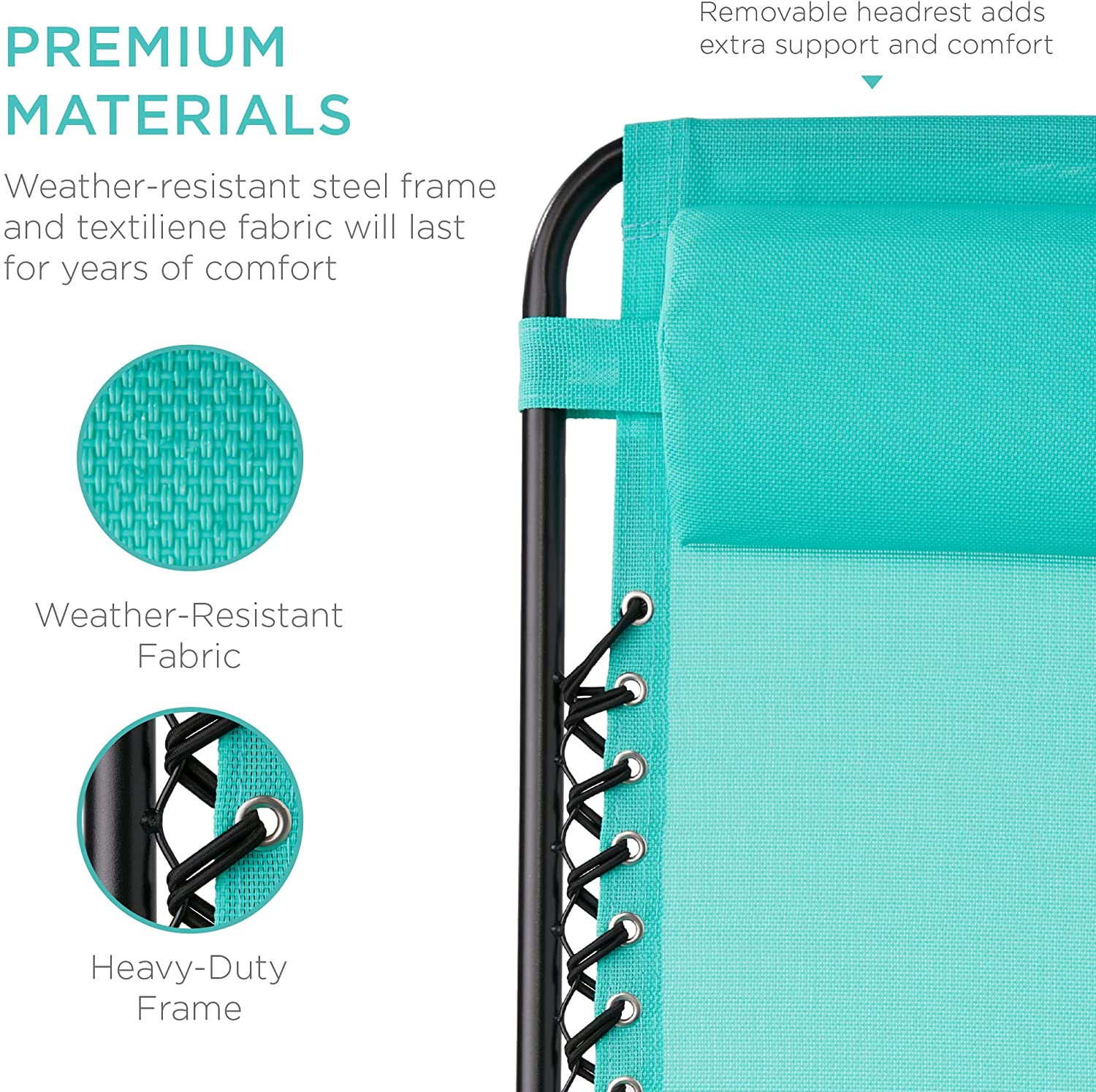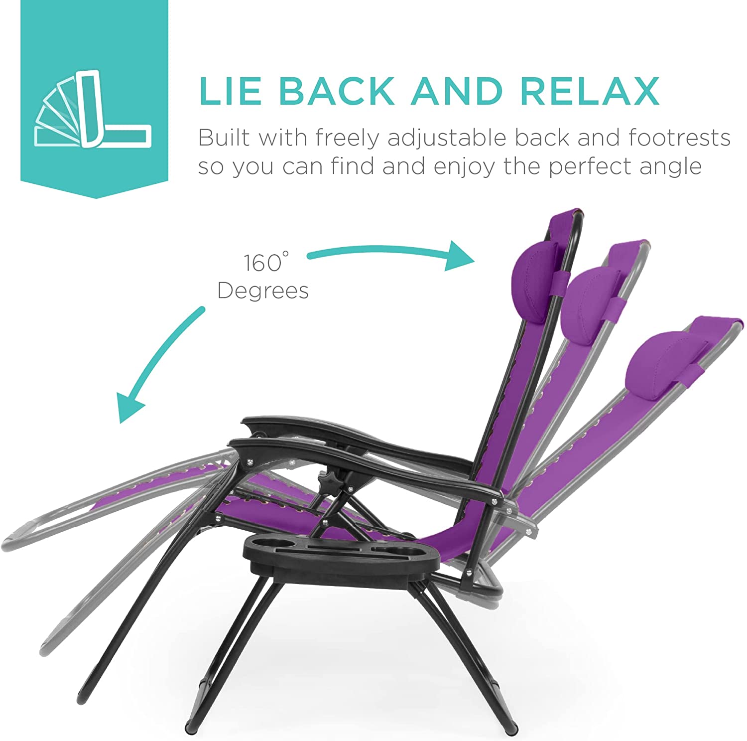 Set of 2 Adjustable Steel Mesh Zero Gravity Lounge Chair Recliners w/Pillows and Cup Holder Trays