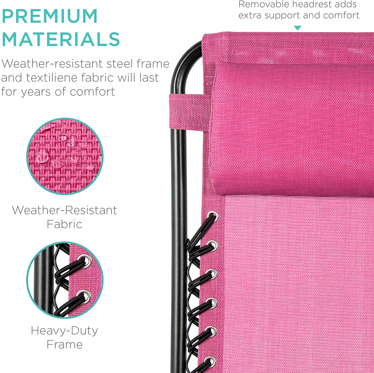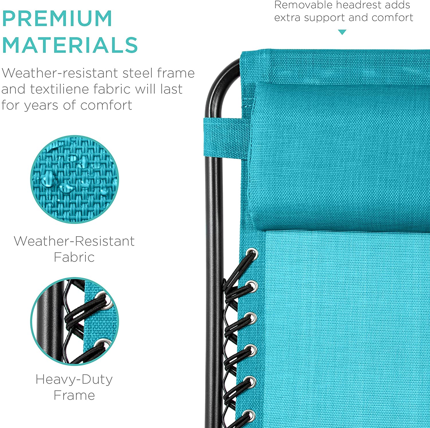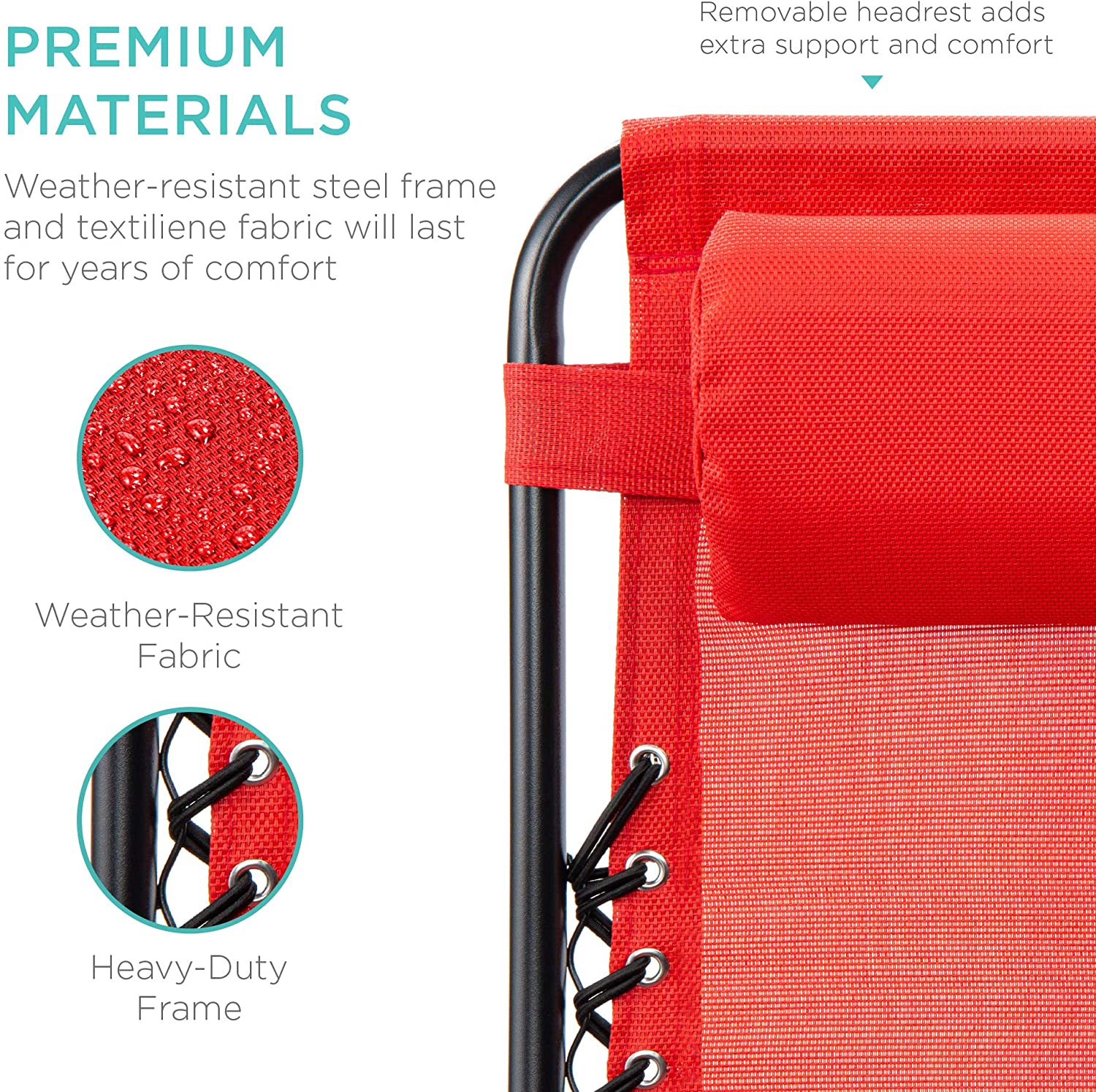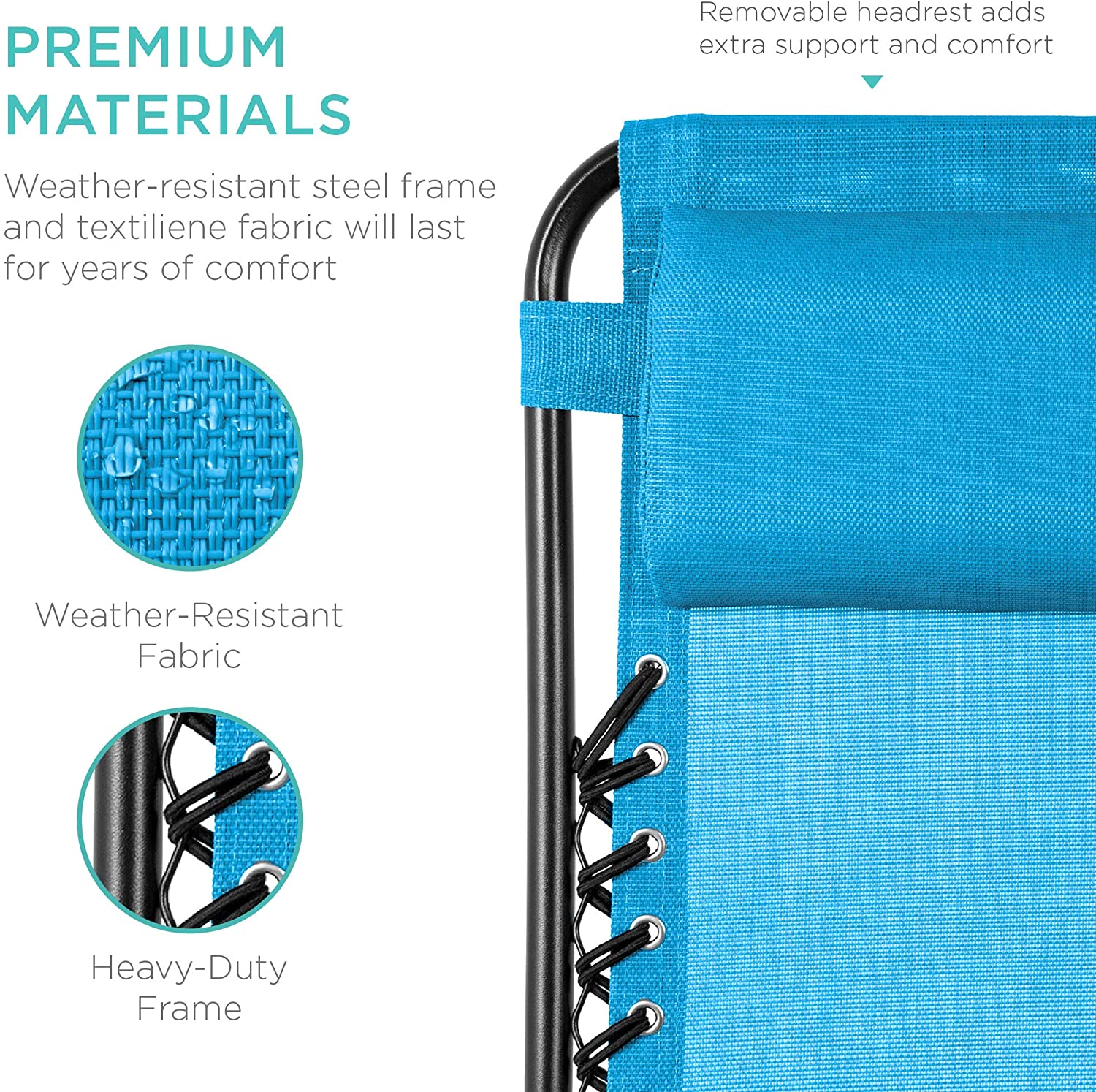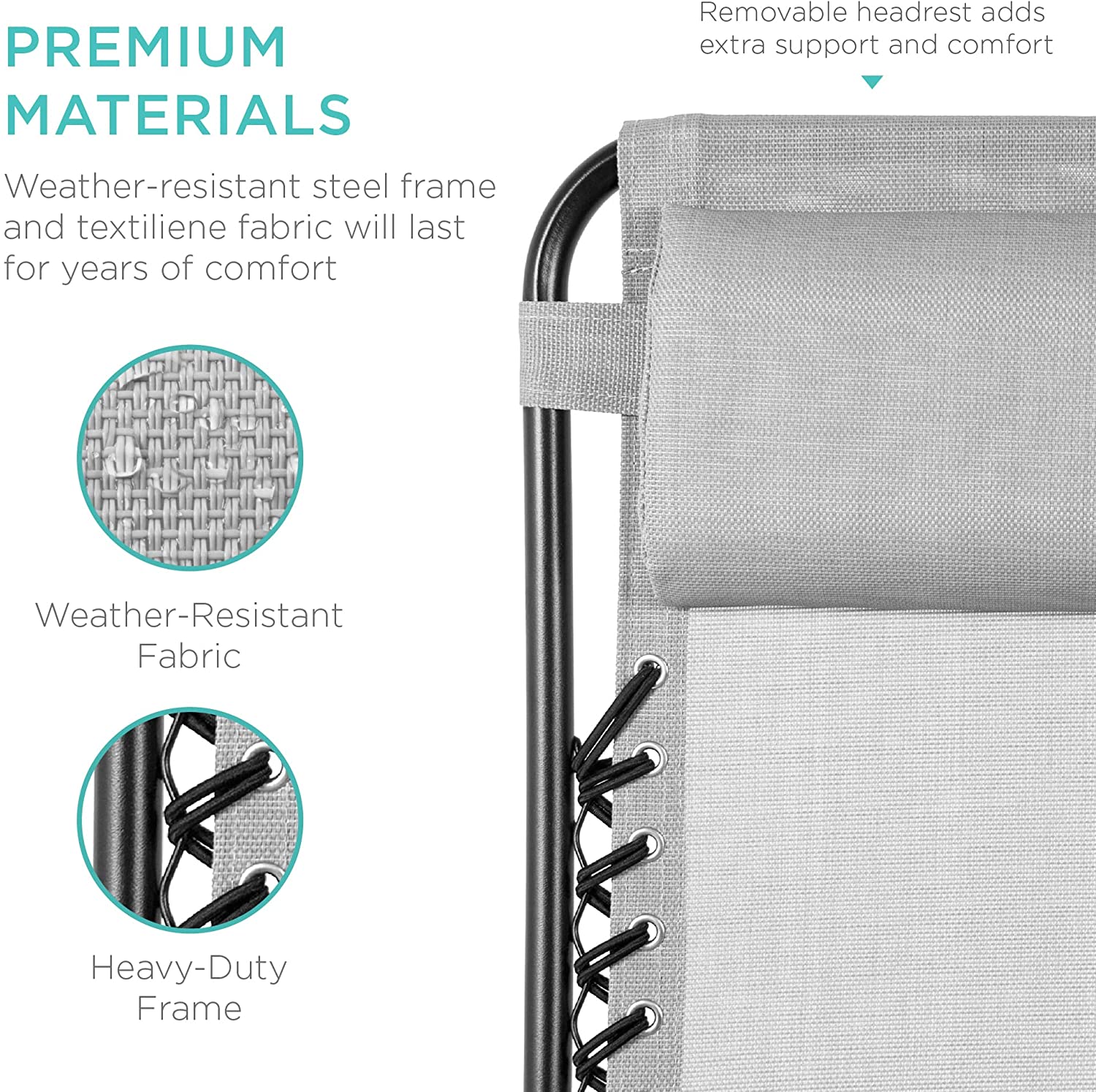 Set of 2 Adjustable Steel Mesh Zero Gravity Lounge Chair Recliners w/Pillows and Cup Holder Trays
