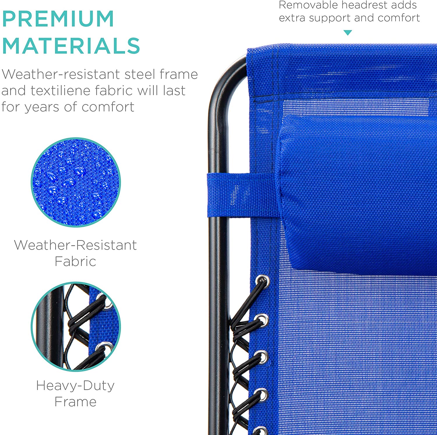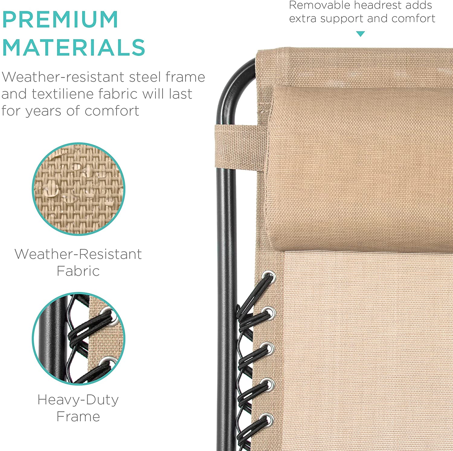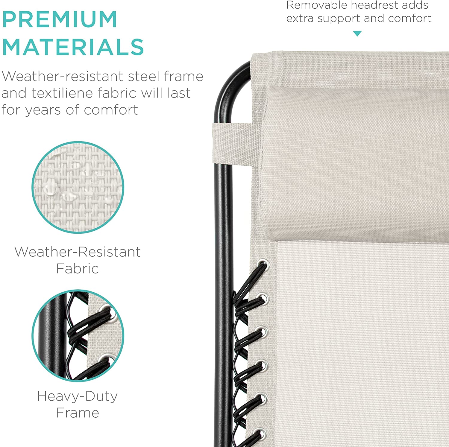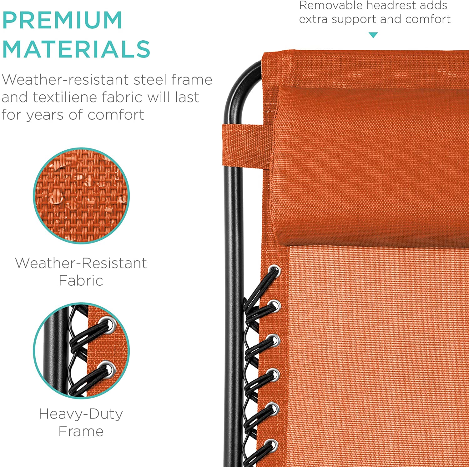 Set of 2 Adjustable Steel Mesh Zero Gravity Lounge Chair Recliners w/Pillows and Cup Holder Trays