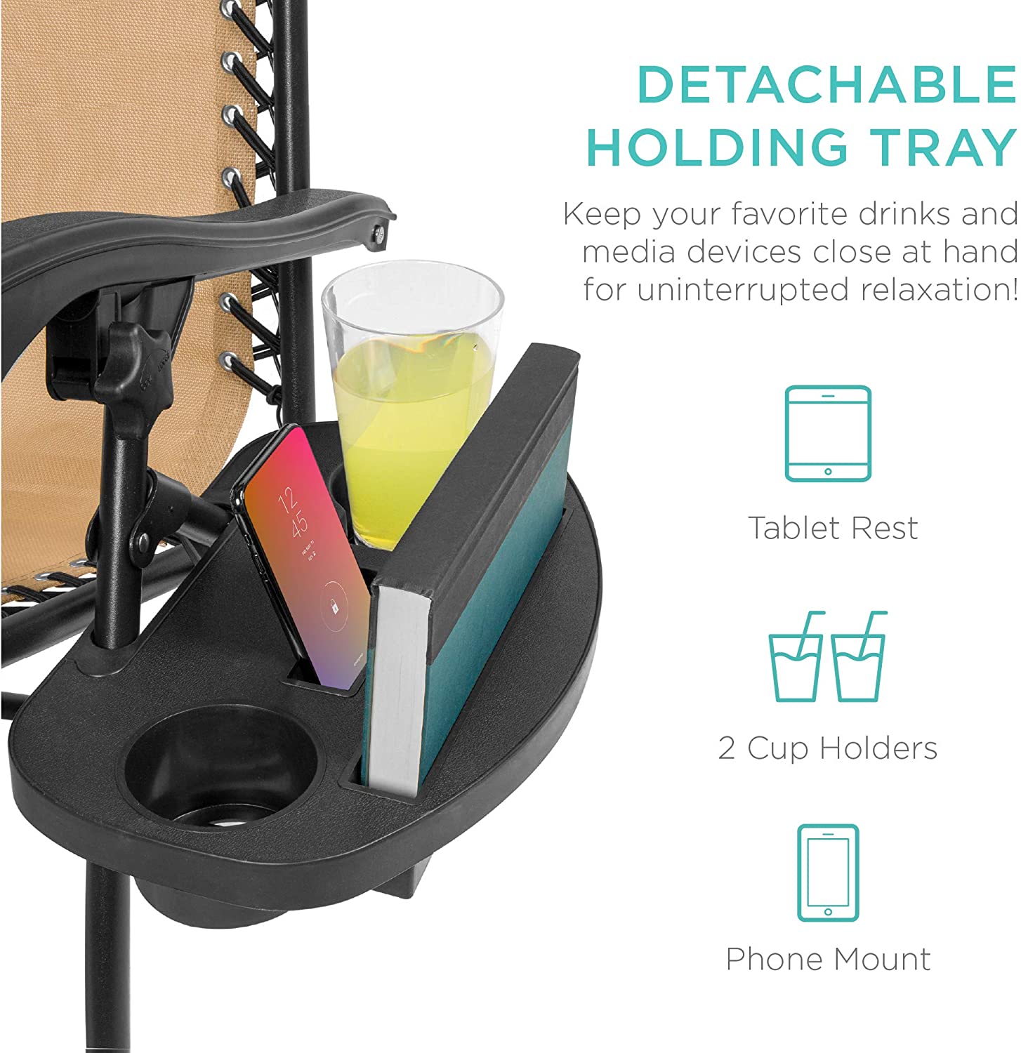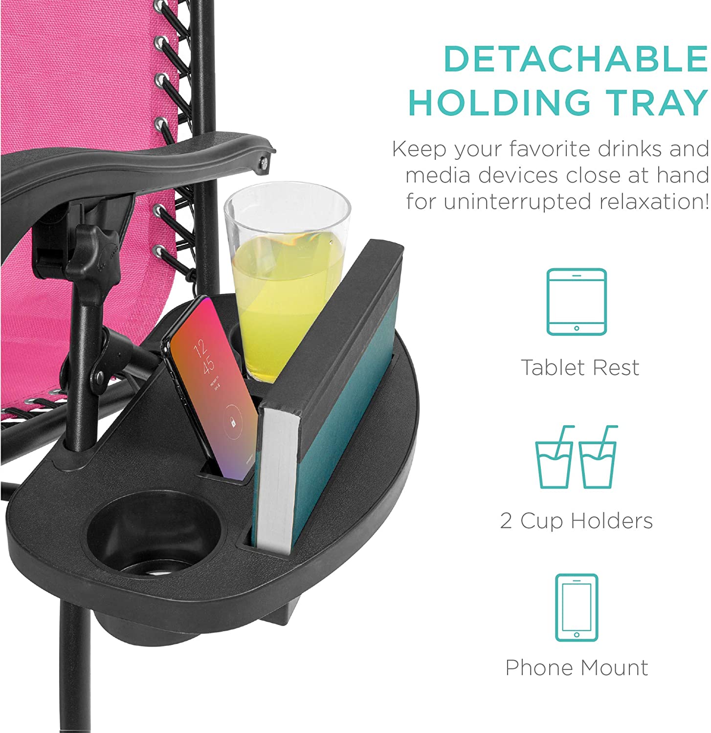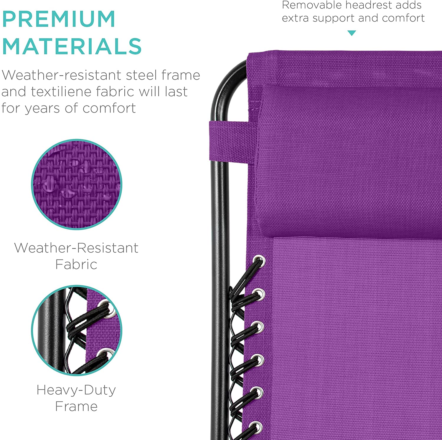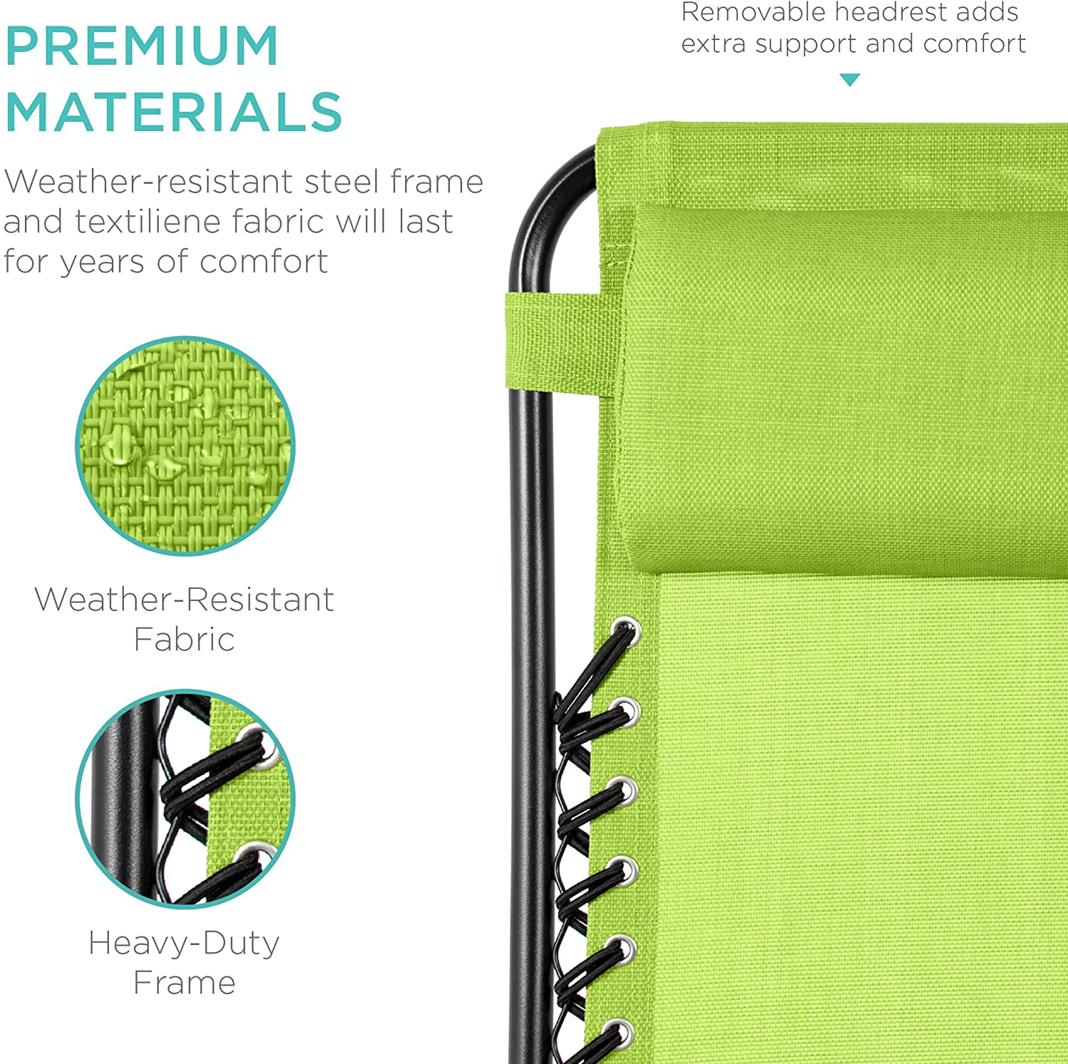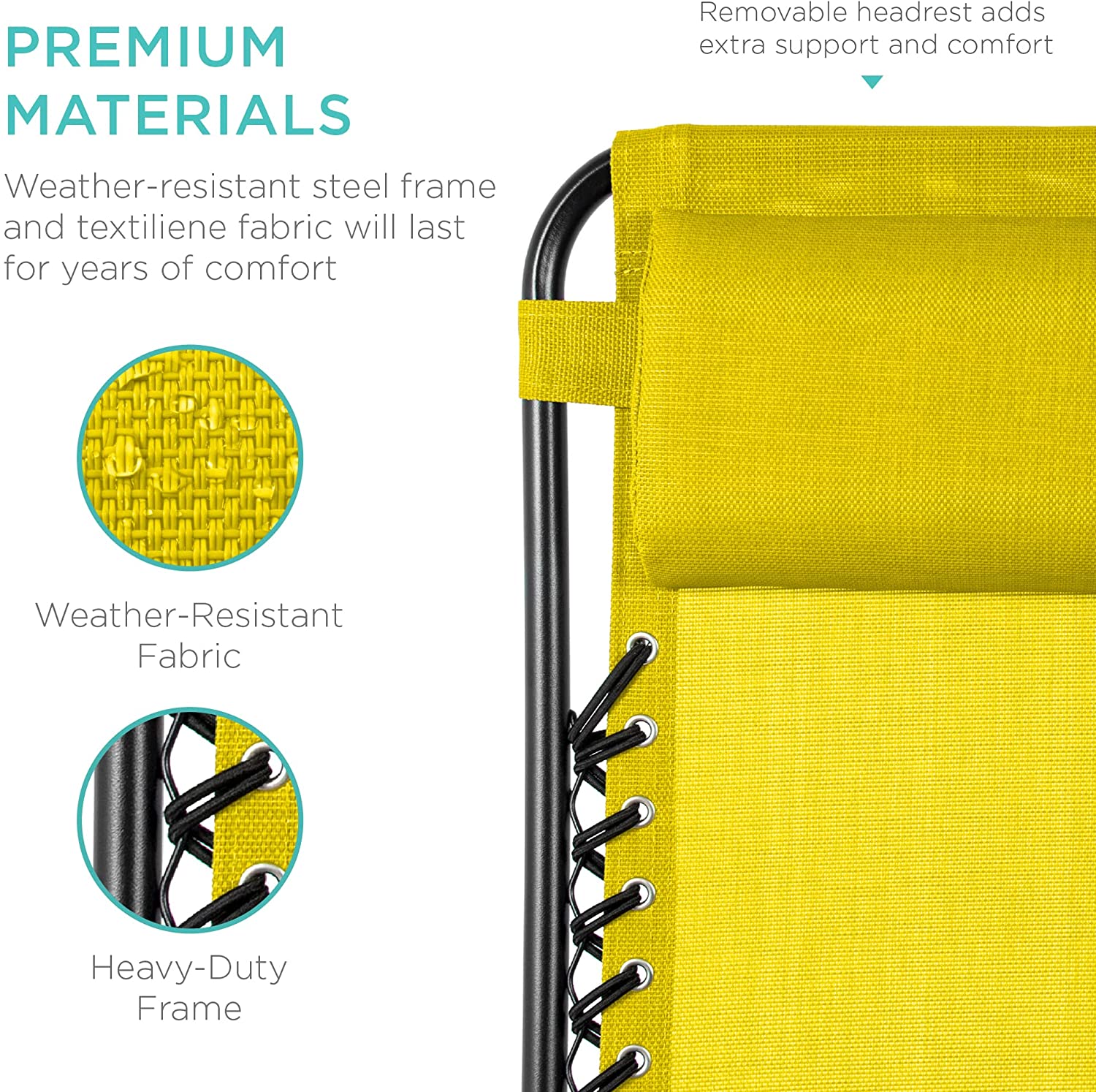 Set of 2 Adjustable Steel Mesh Zero Gravity Lounge Chair Recliners w/Pillows and Cup Holder Trays