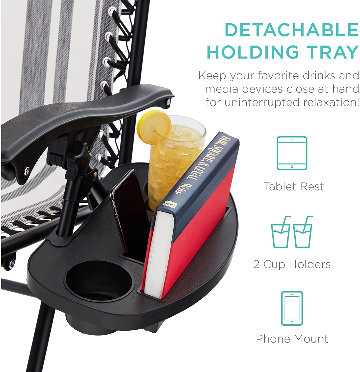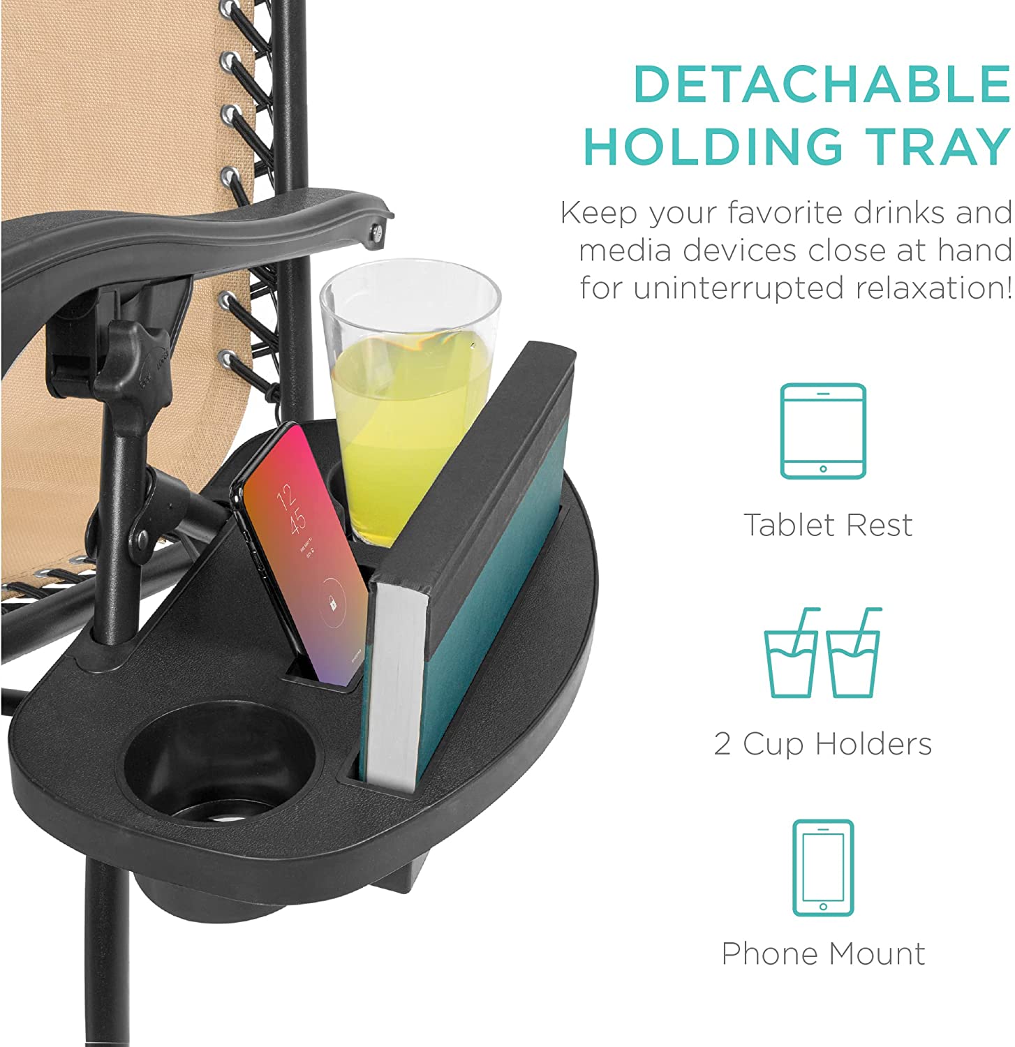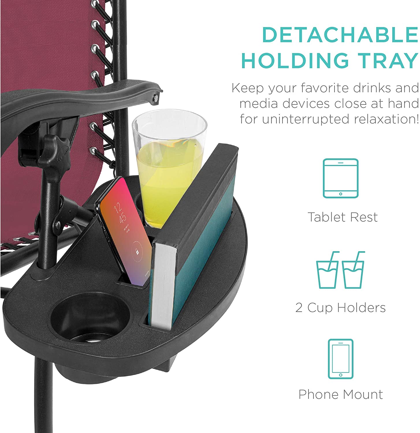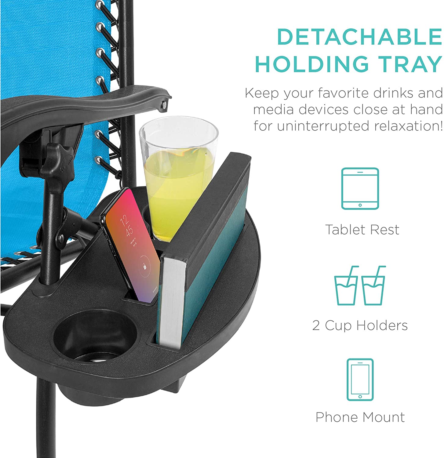 Set of 2 Adjustable Steel Mesh Zero Gravity Lounge Chair Recliners w/Pillows and Cup Holder Trays
