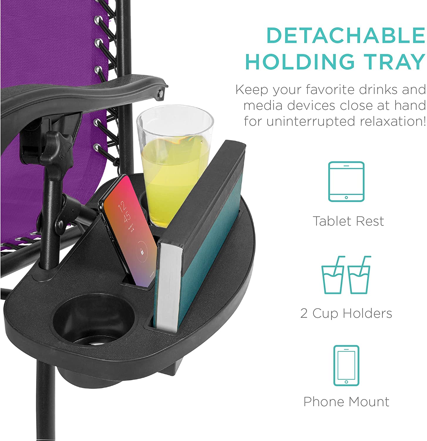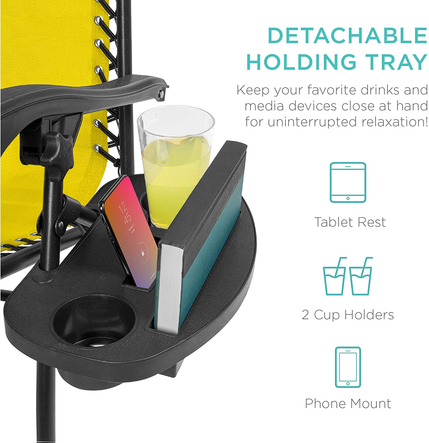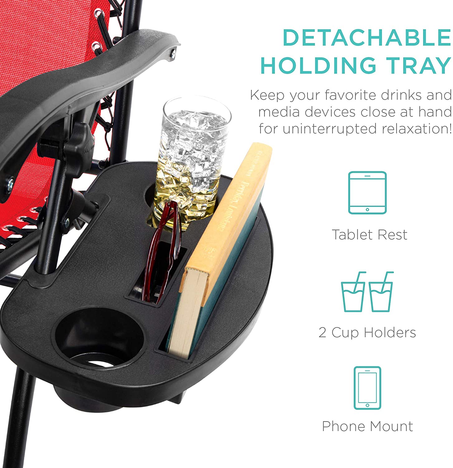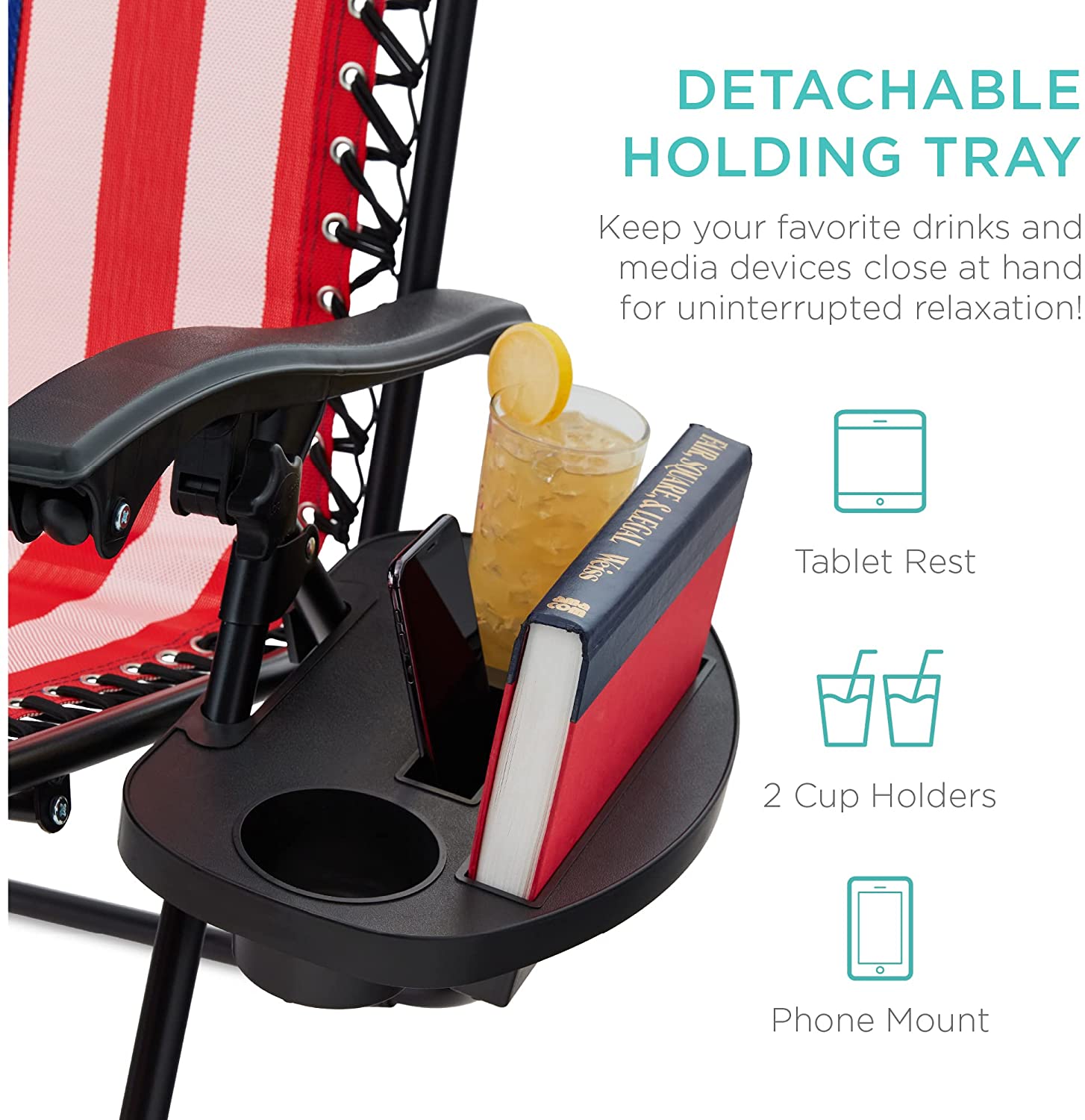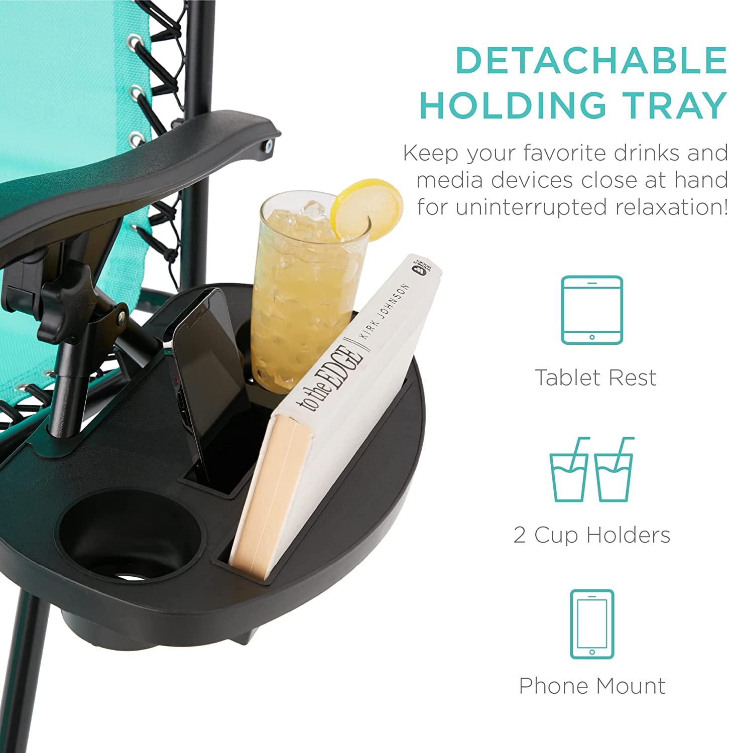 Set of 2 Adjustable Steel Mesh Zero Gravity Lounge Chair Recliners w/Pillows and Cup Holder Trays