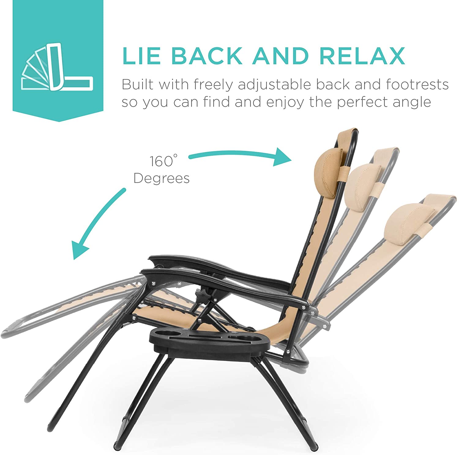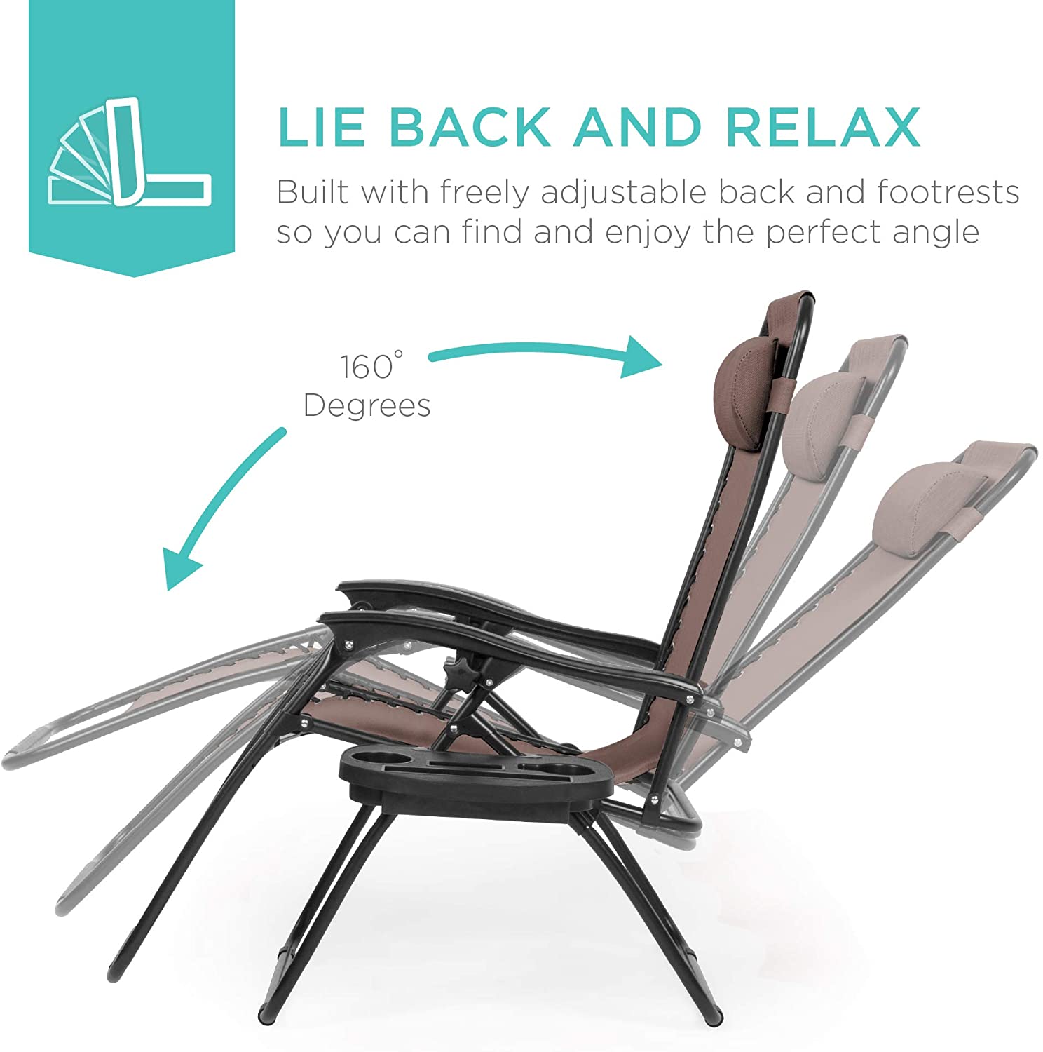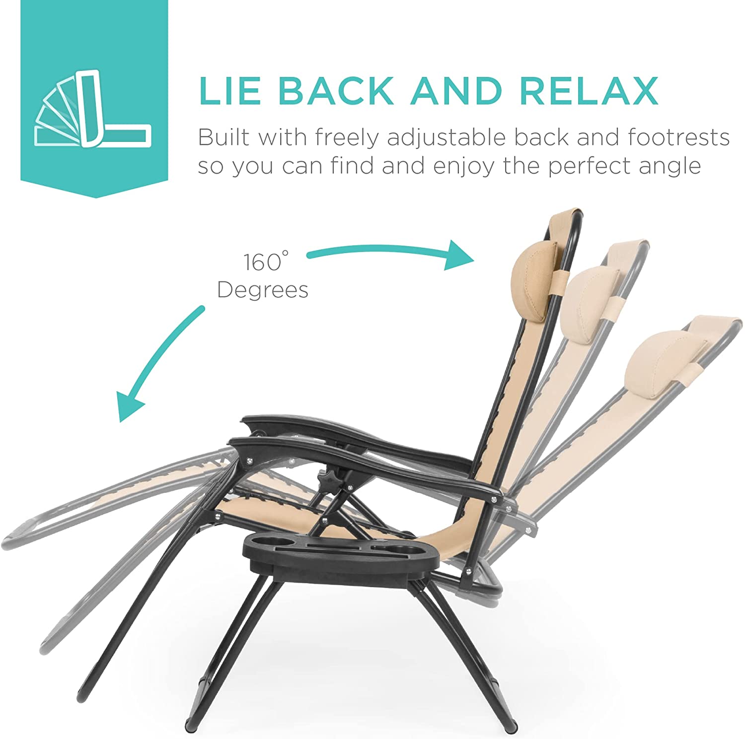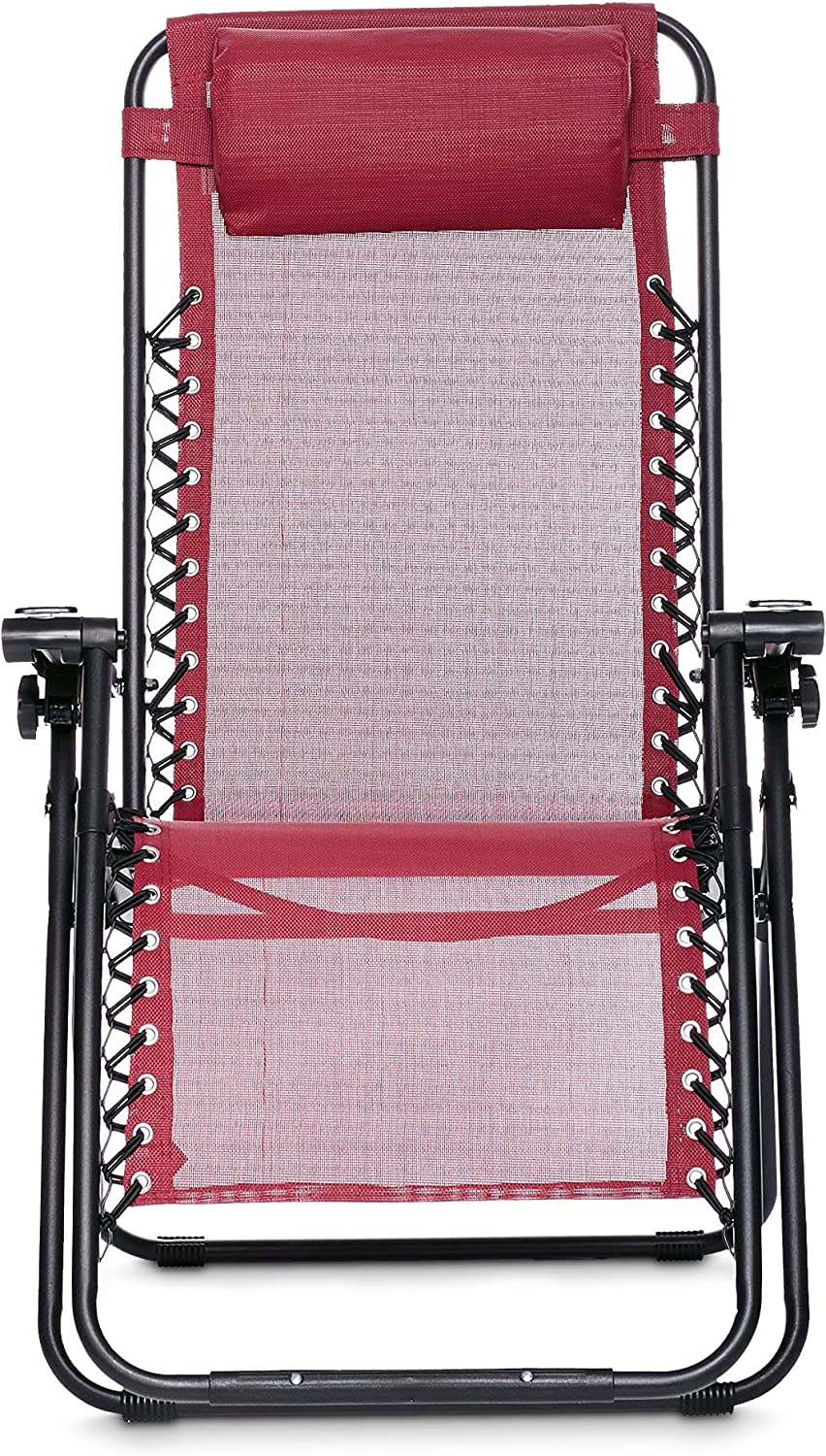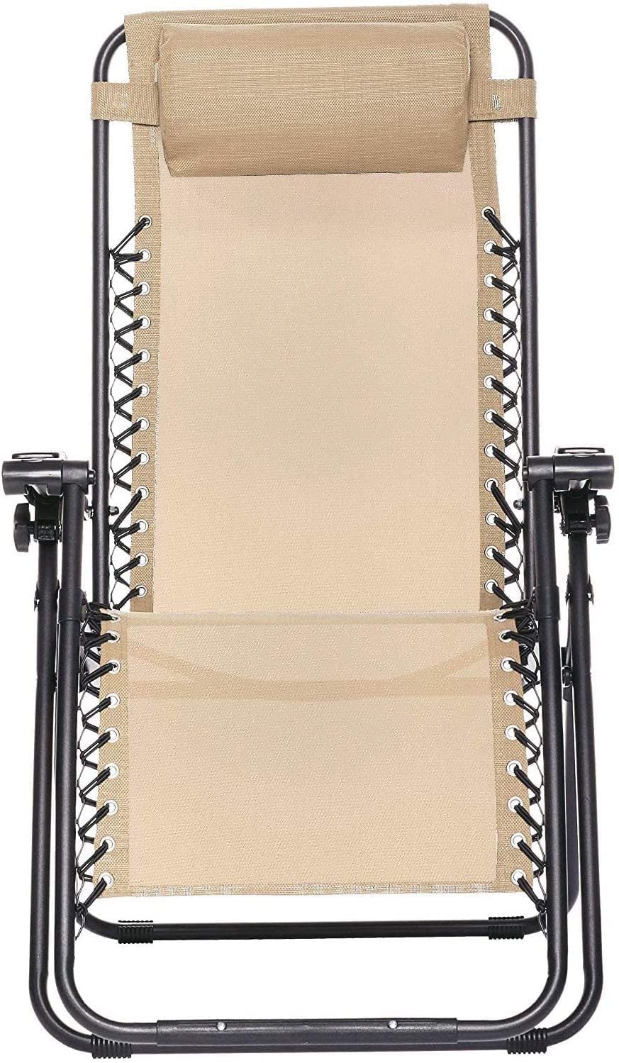 Adjustable Zero Gravity Folding Reclining Lounge Chair with Pillow, Black