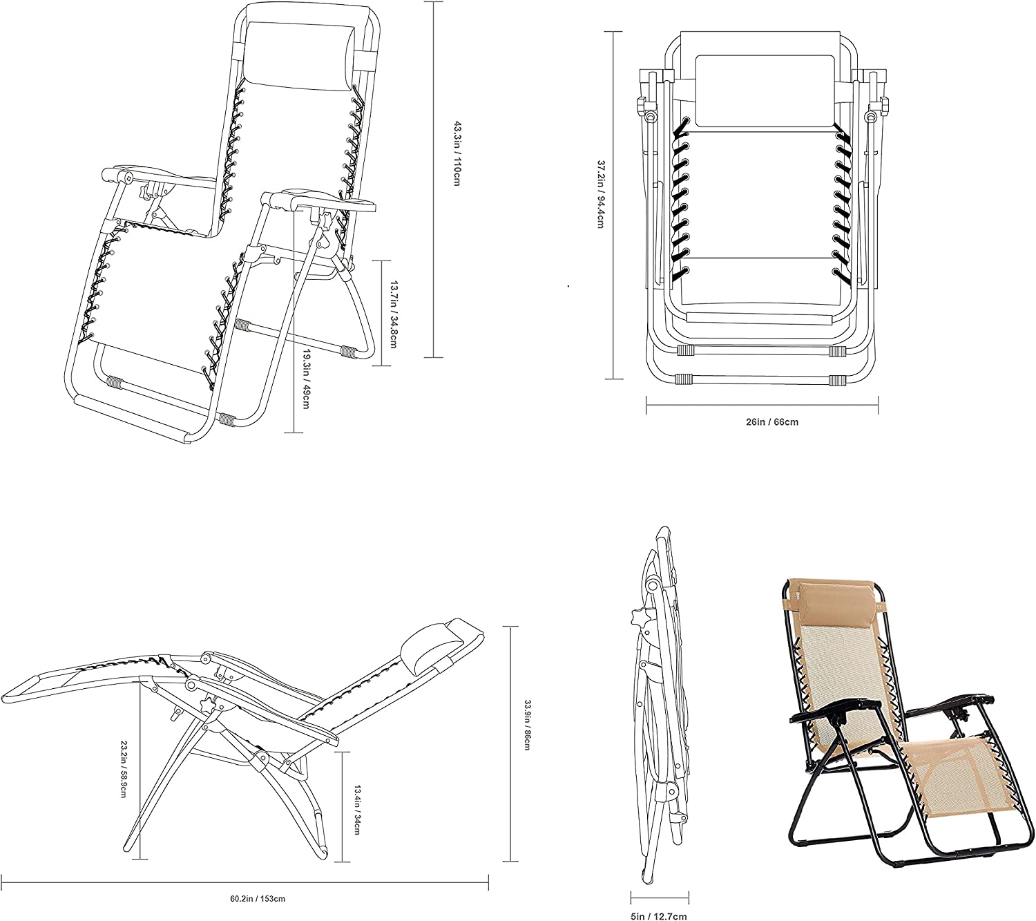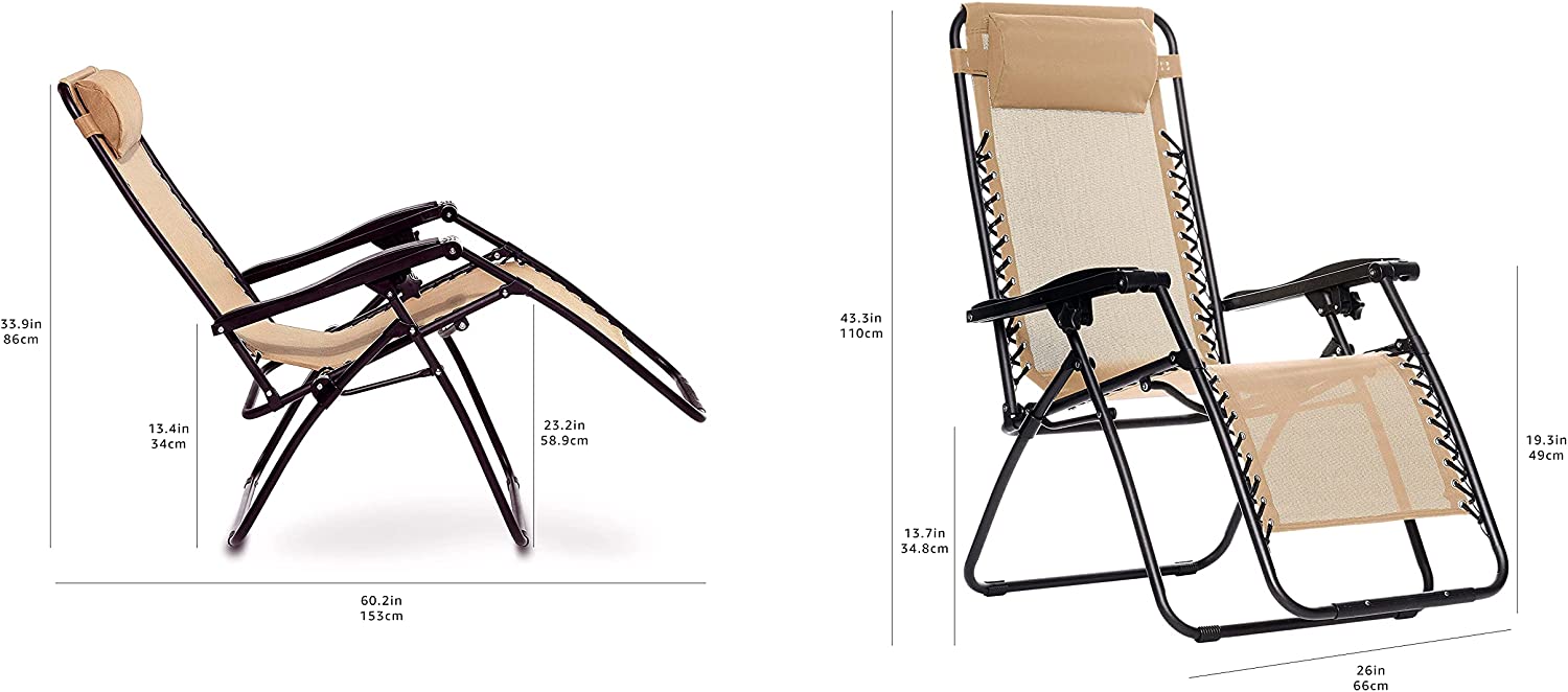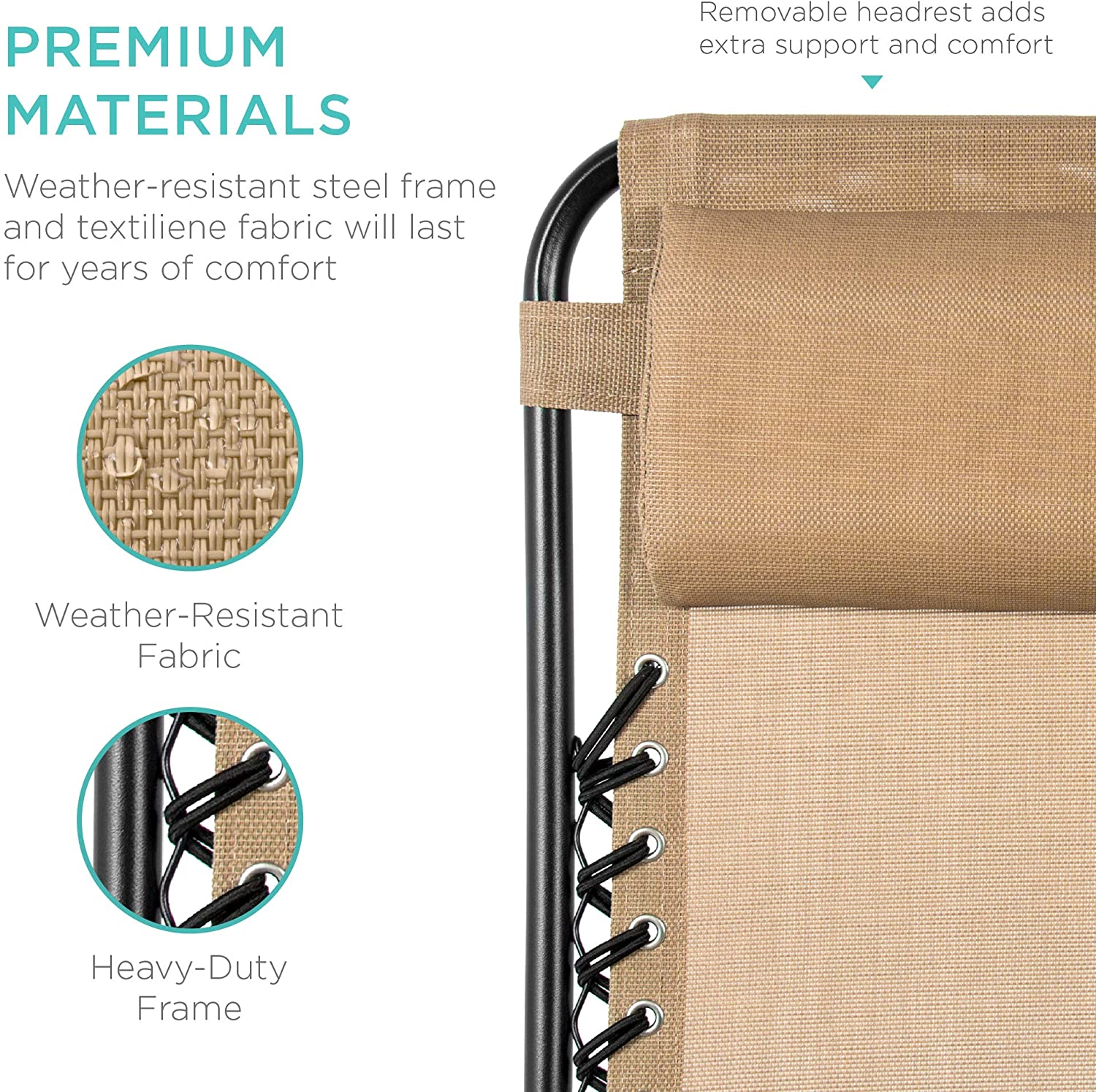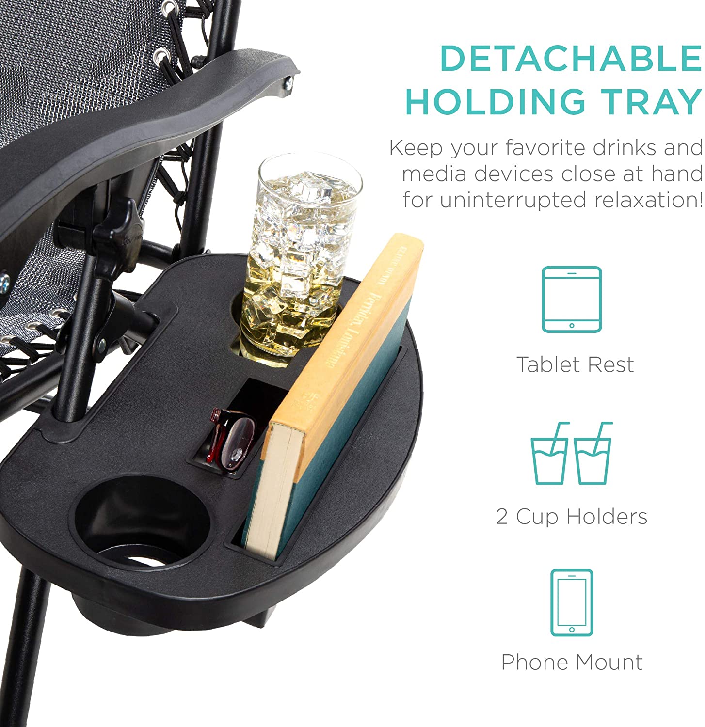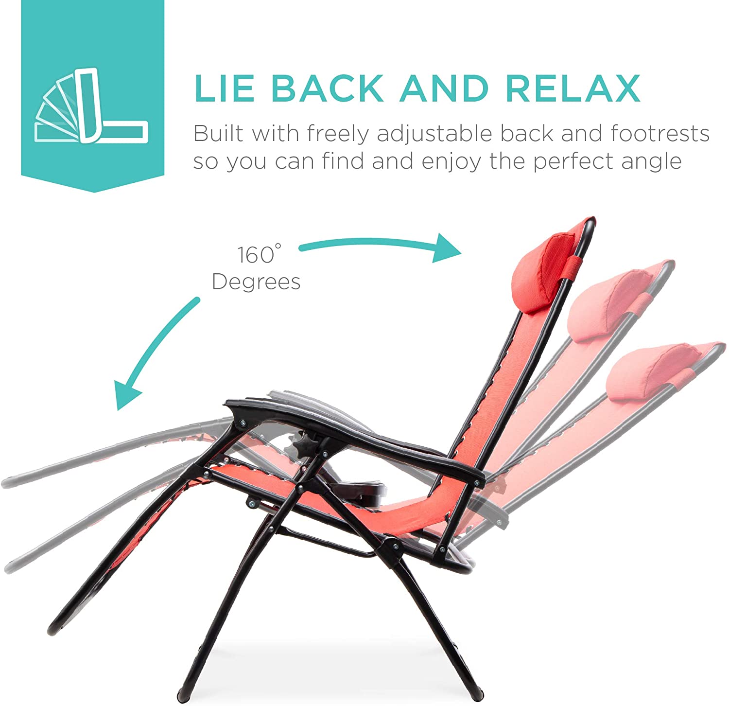 Adjustable Zero Gravity Folding Reclining Lounge Chair with Pillow, Black
