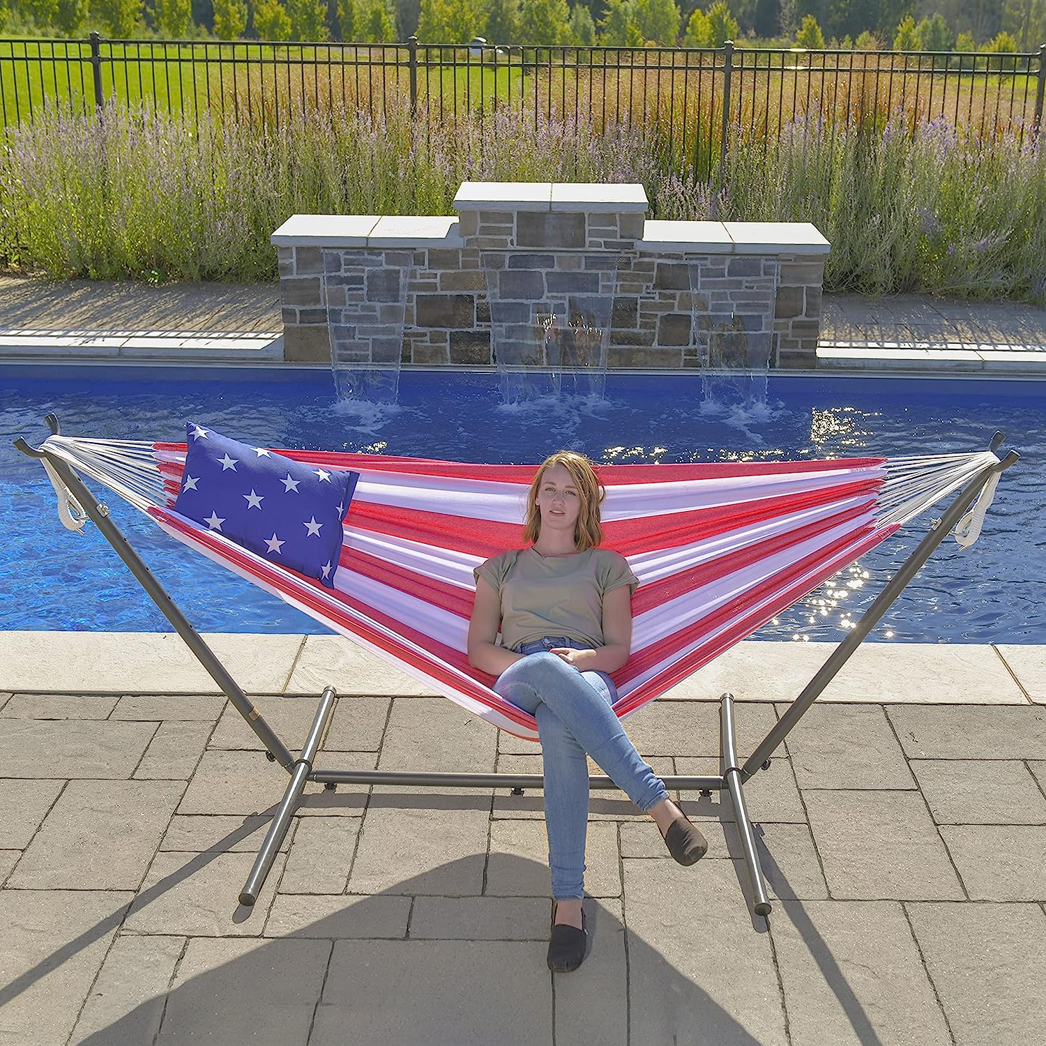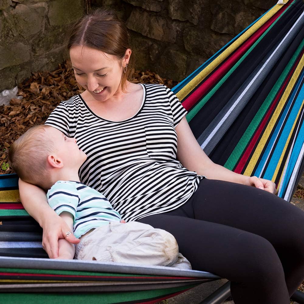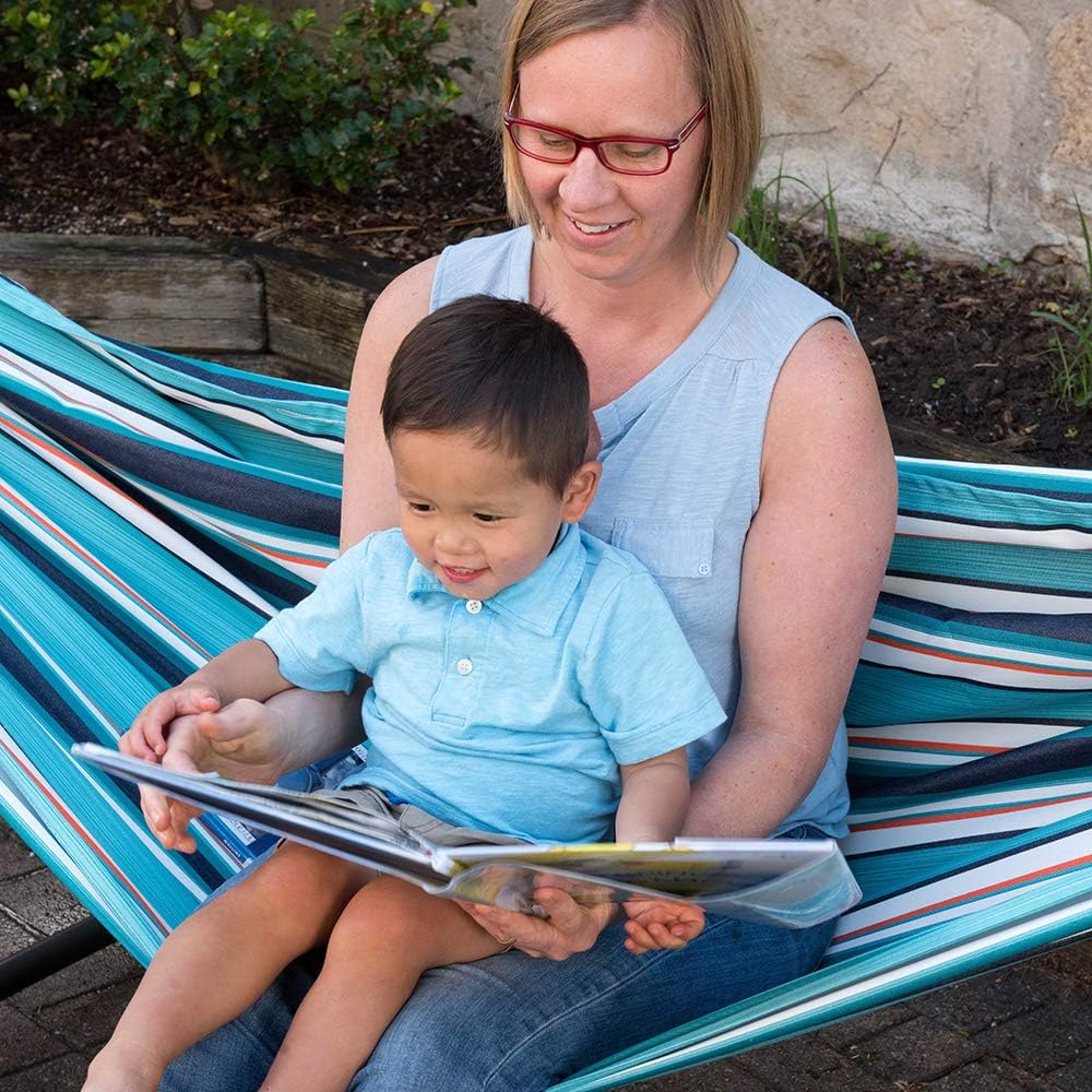 Double Cotton Hammock with Space Saving Steel Stand, Tropical (450 lb Capacity - Premium Carry Bag Included)