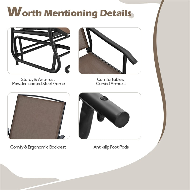 Outdoor 2-Person Rocking Loveseat Patio Bench Glider Chair with Center Tempered Glass Table