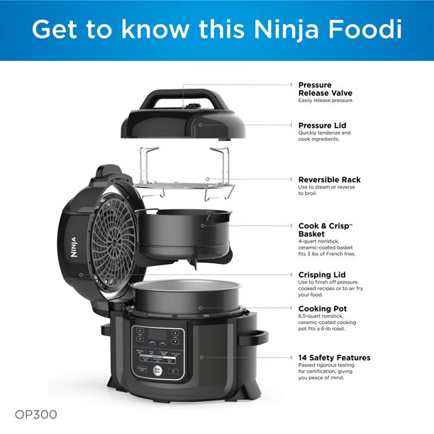Ninja Foodi TenderCrisp 8-in-1 6.5-Quart Pressure Cooker, OP300
