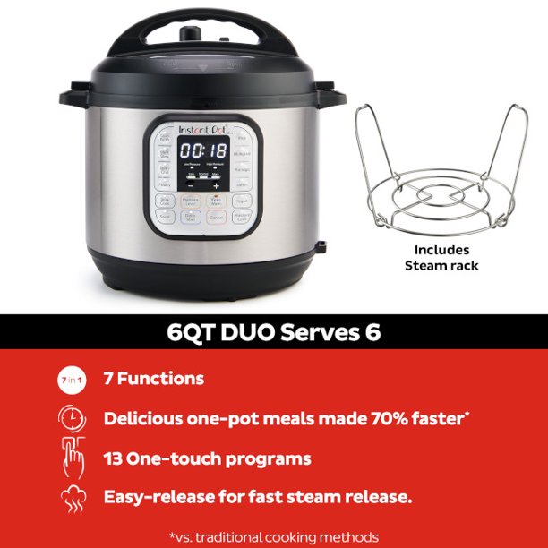 Instant Pot, 6-Quart Duo Electric Pressure Cooker, 7-in-1 Yogurt Maker, Food Steamer, Slow Cooker, Rice Cooker & More
