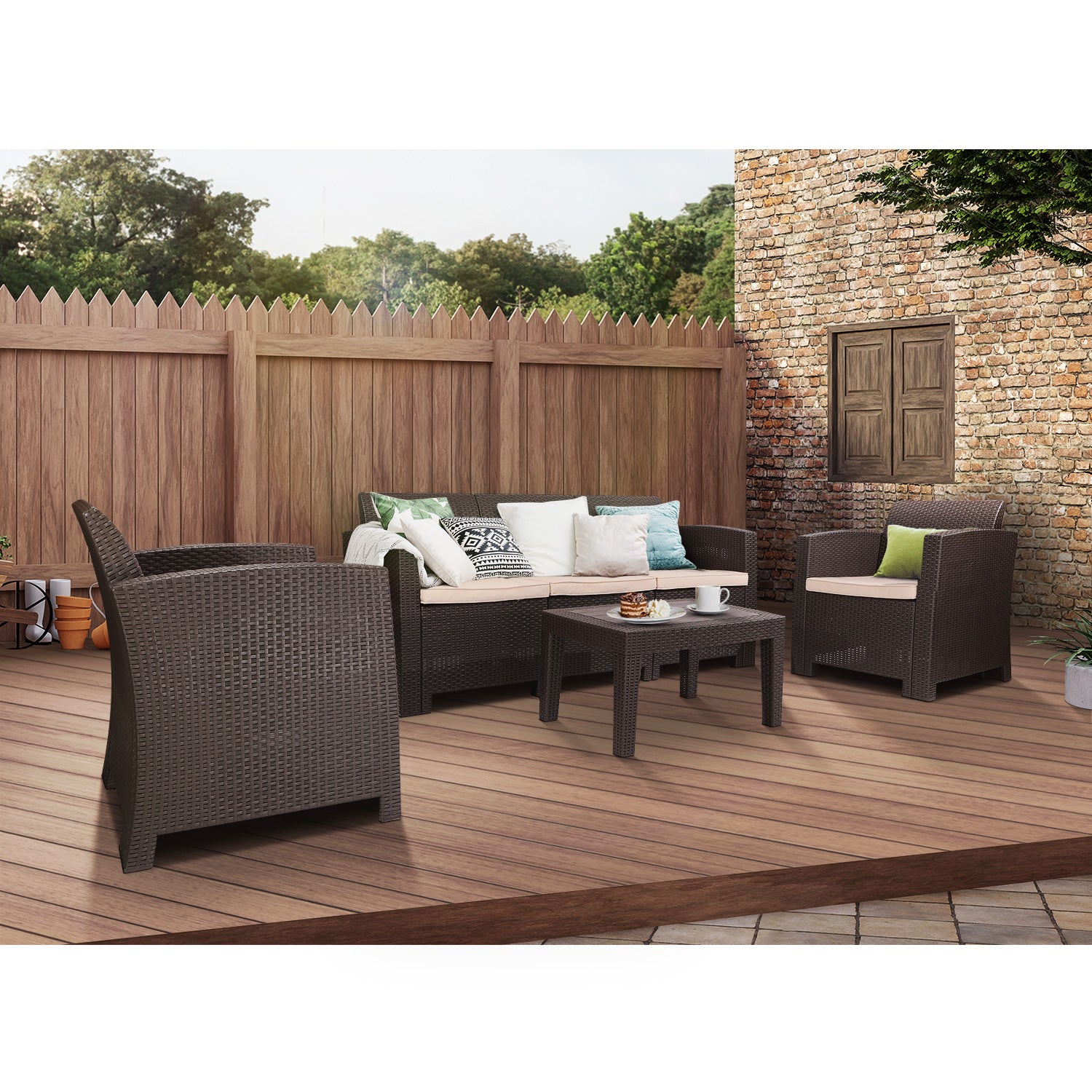 All Weather Anti-UV Patio Conversation Set PE Rattan Wicker Sofa Armchair for Outdoor Indoor Backyard Porch Garden Poolside USE