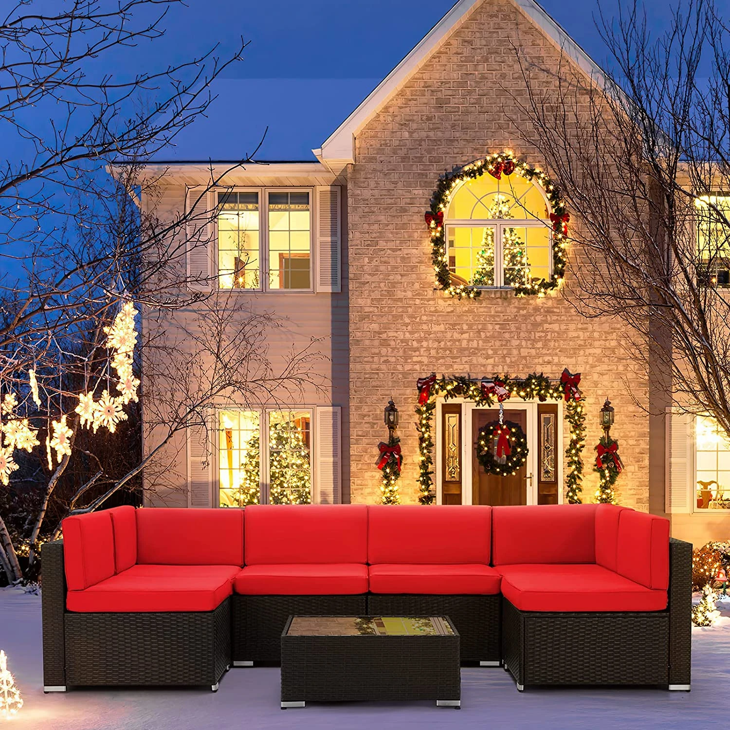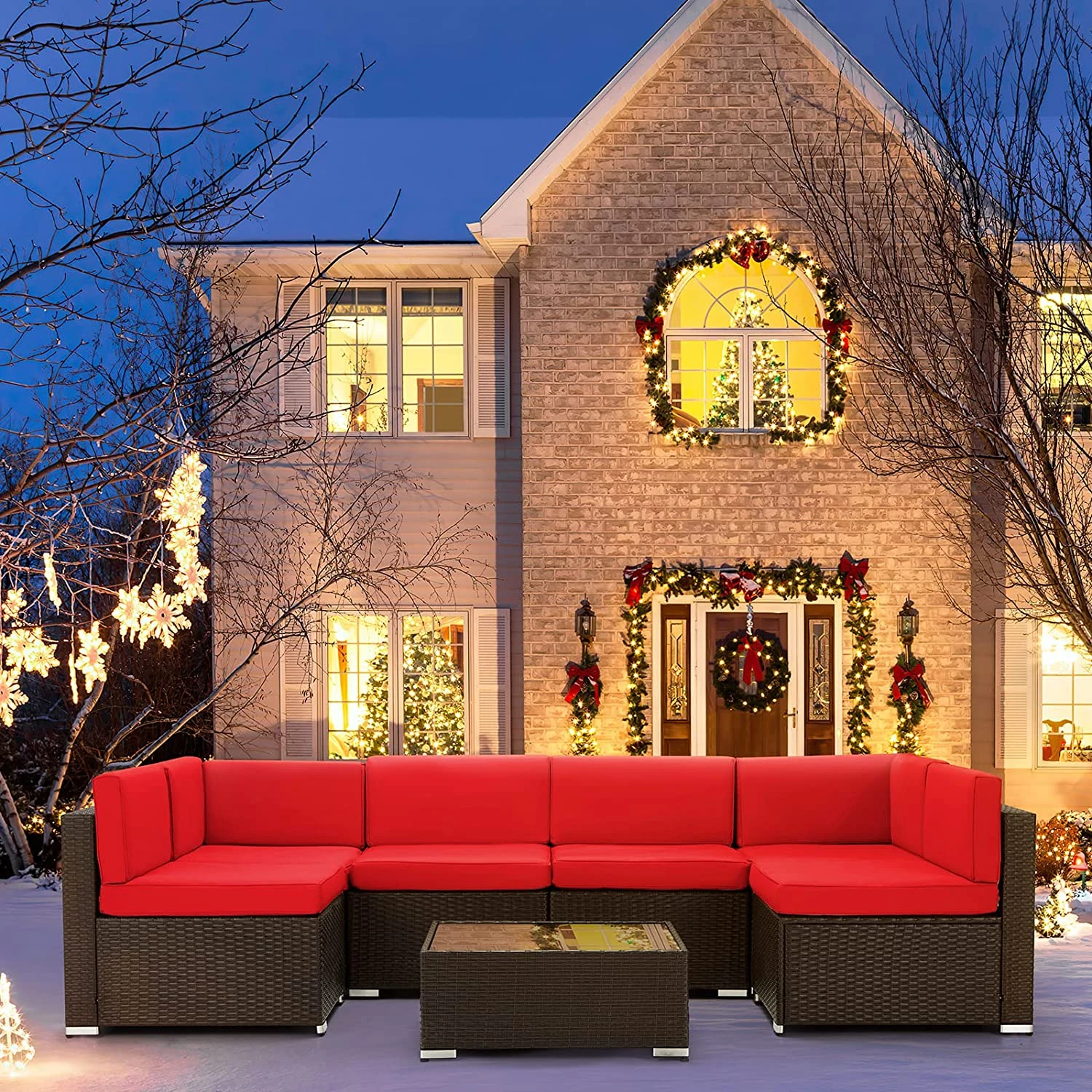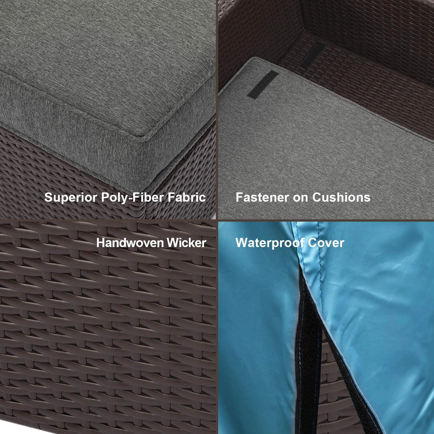 U-MAX 7 Piece Outdoor Patio Furniture Set, PE Rattan Wicker Sofa Set, Outdoor Sectional Furniture Chair Set with Khaki Cushions and Tea Table